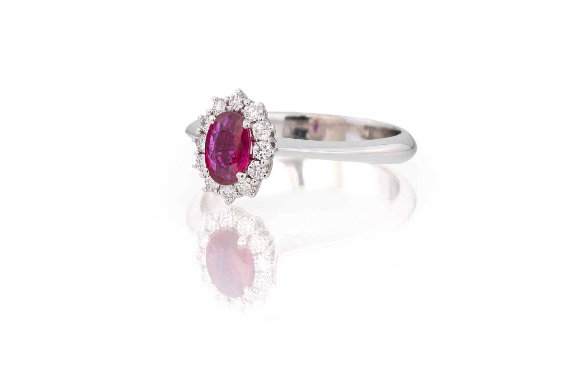 ANELLO CON RUBINO OVALE - ct 0,46, brillanti ct 0,18, oro bianco 750/000, 3,10