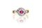 ANELLO CON RUBINO SU OVALE - in brillanti ct 0,10 su oro bianco, rubino ct 0,35, montatura in oro giallo 750/000, g 5,80