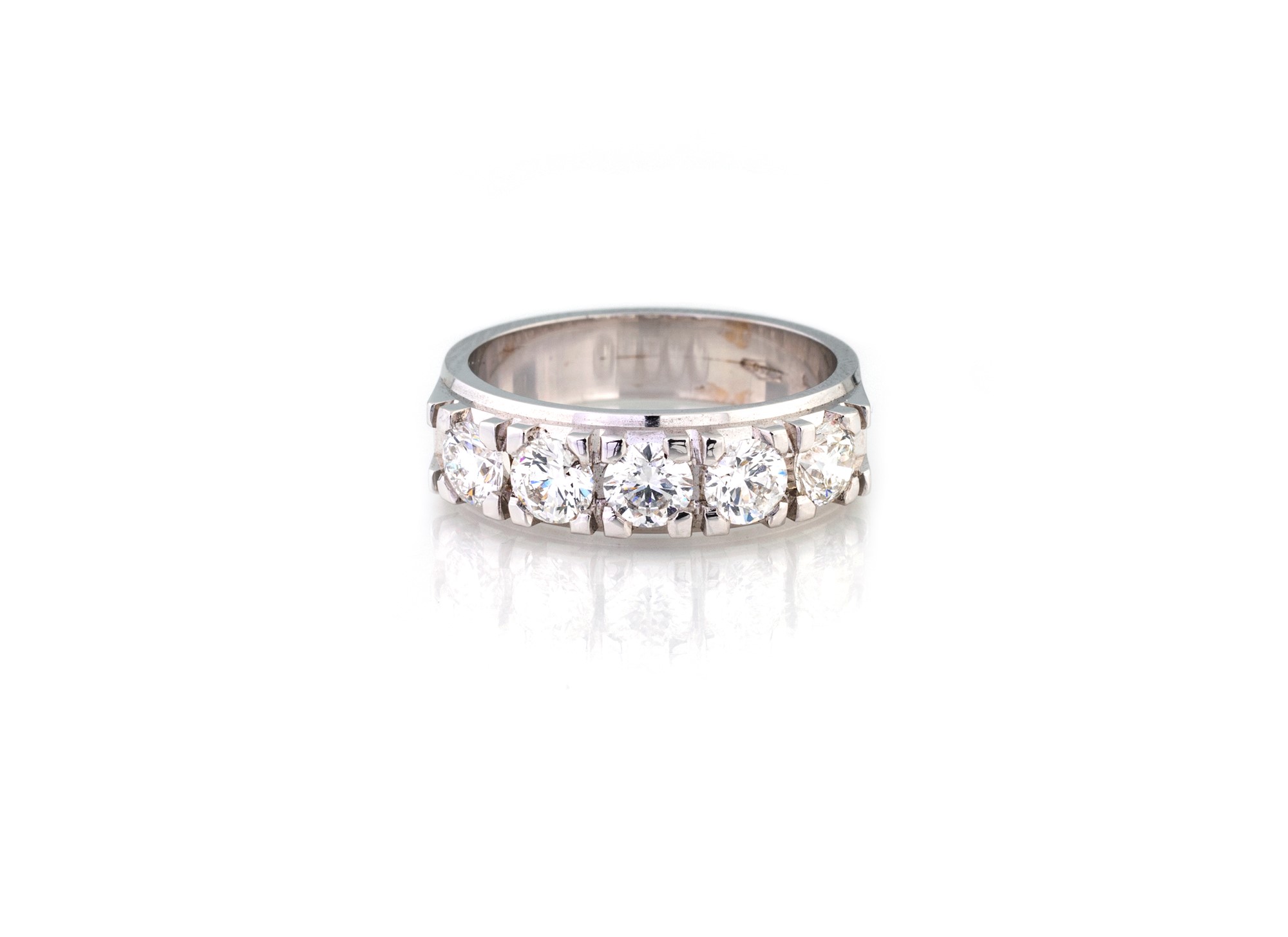 FEDE CON 5 DIAMANTI - taglio a brillante ct 1,25 colore G, cintura sfaccettata, fascia in oro bianco 750/000, g 6,50