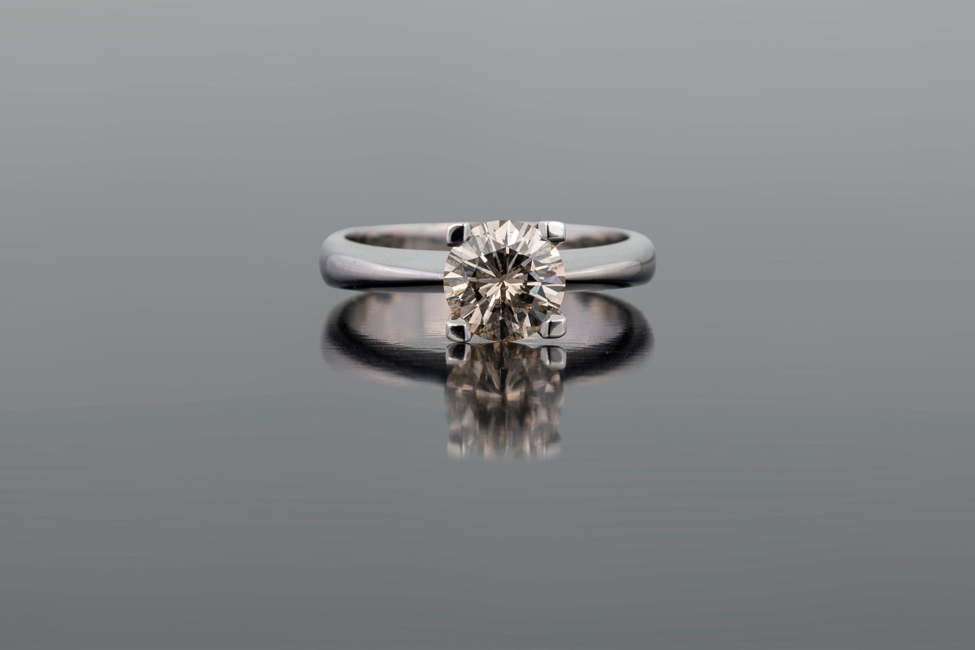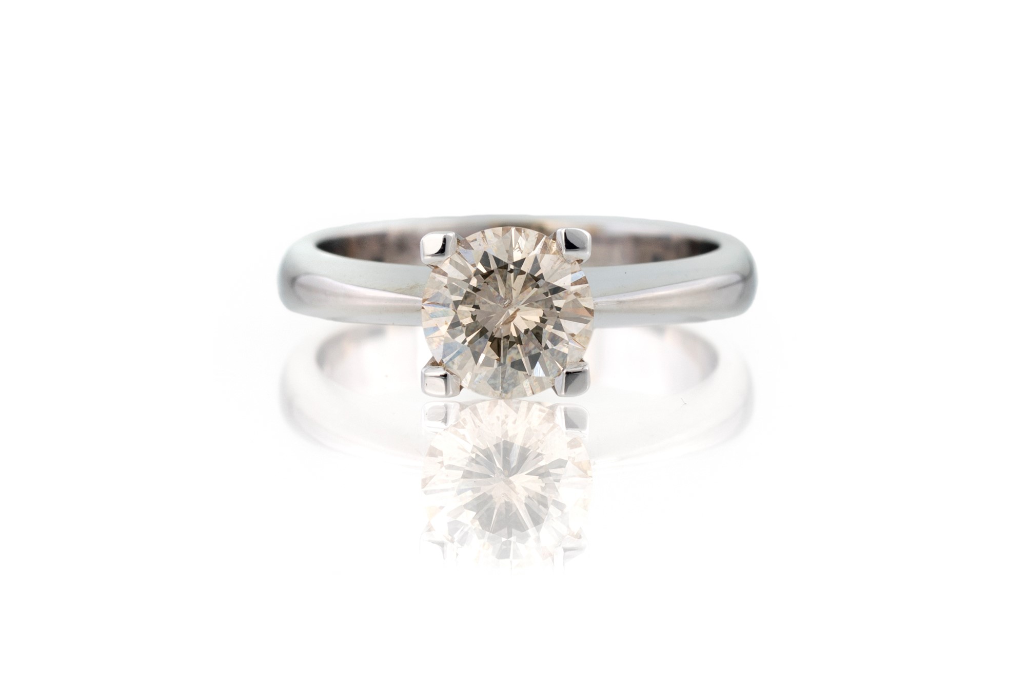 SOLITARIO CON BRILLANTE - ct 1,25 colore brown-vs, oro bianco 750/000, g 5,10