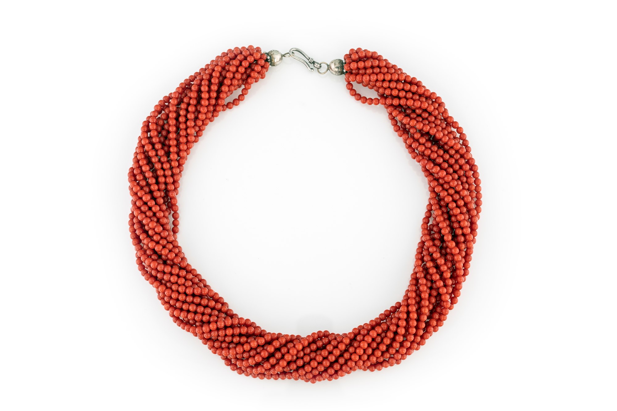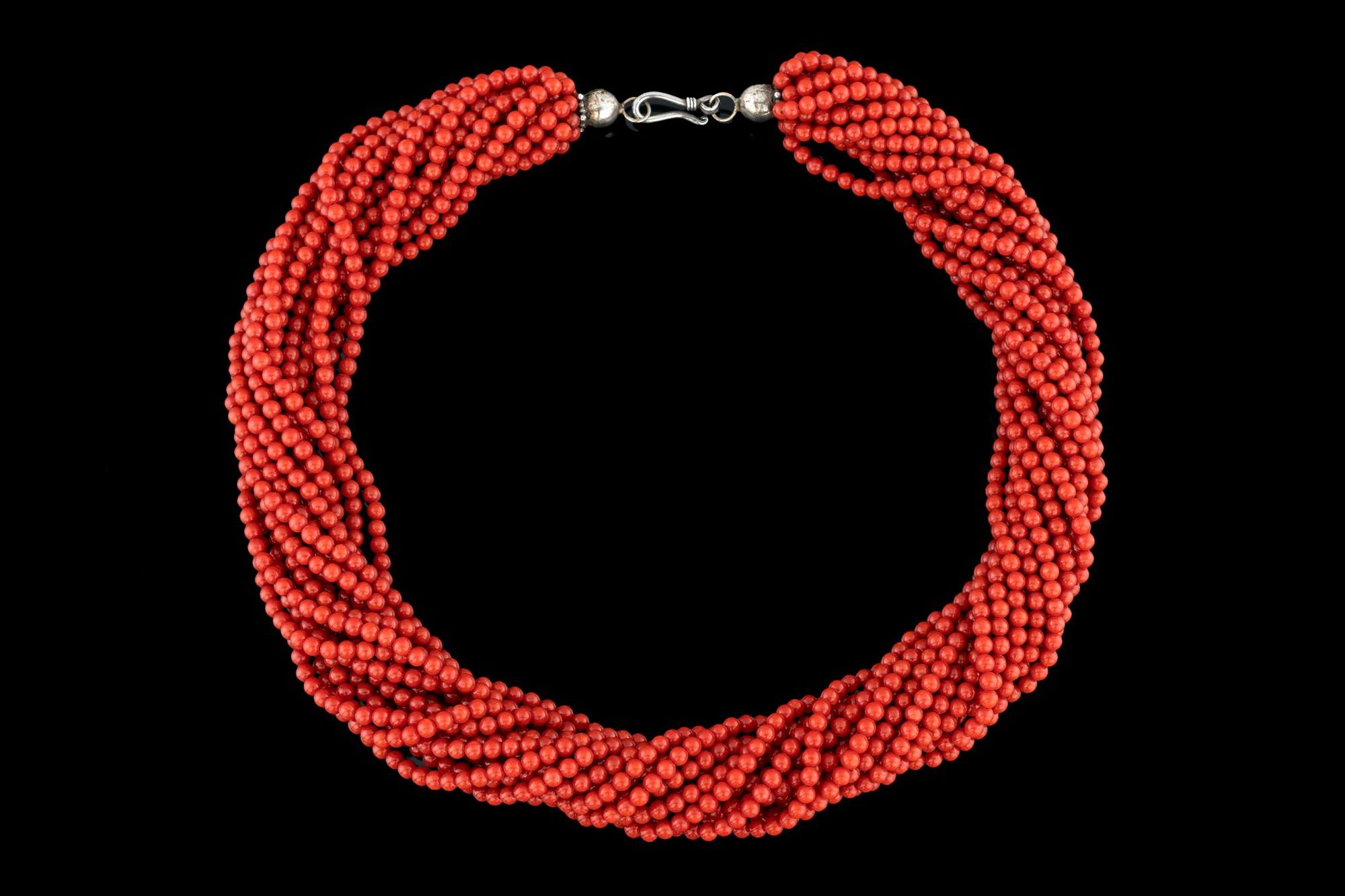 TORCHON DI CORALLO - con 15 fili di corallo "Moro di Sardegna" diametro mm 3,4, g 126