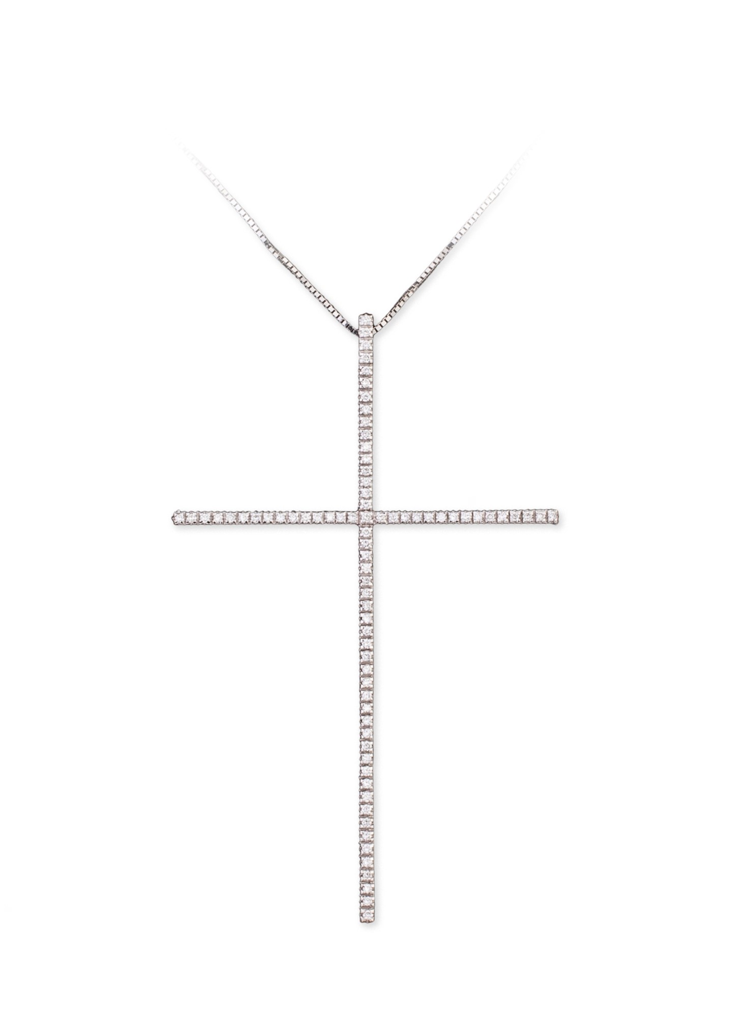 CROCE IN BRILLANTI - di ct 0,53 in oro bianco 750/000, catenella San Marco, g 7,90, misure mm 7,3 x 5,3