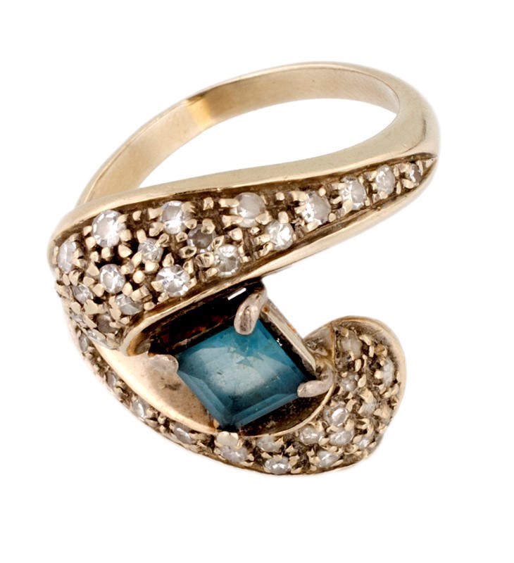 ANELLO CON TOPAZIO - in oro bianco 750/000 con topazio azzurro e brillanti huit-huit, g 6,50