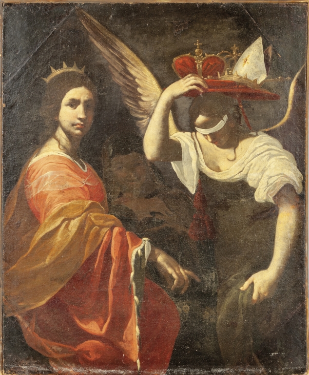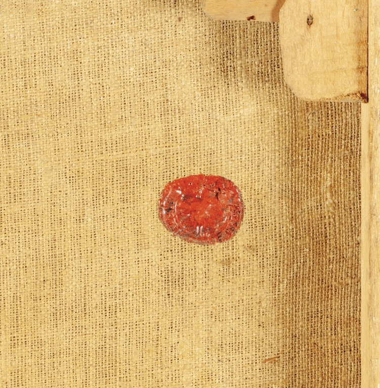 Scuola toscana sec.XVII 'Scena allegorica' olio nel retro antica ceralacca di collezione