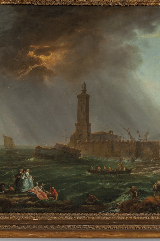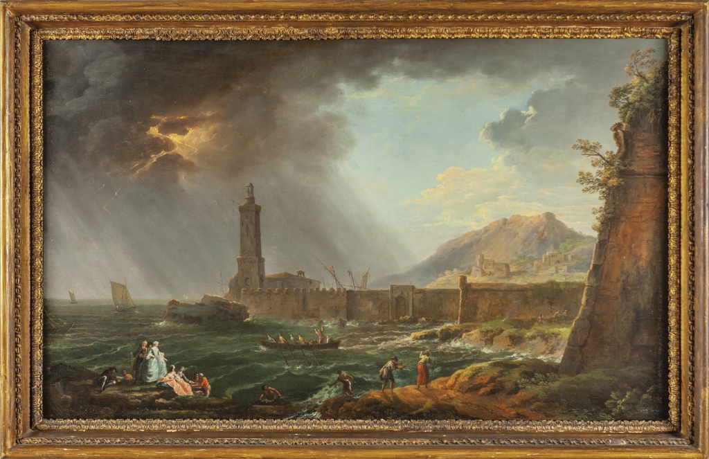 Scuola francese sec.XVIII 'Veduta del Mediterraneo con Lanterna' olio