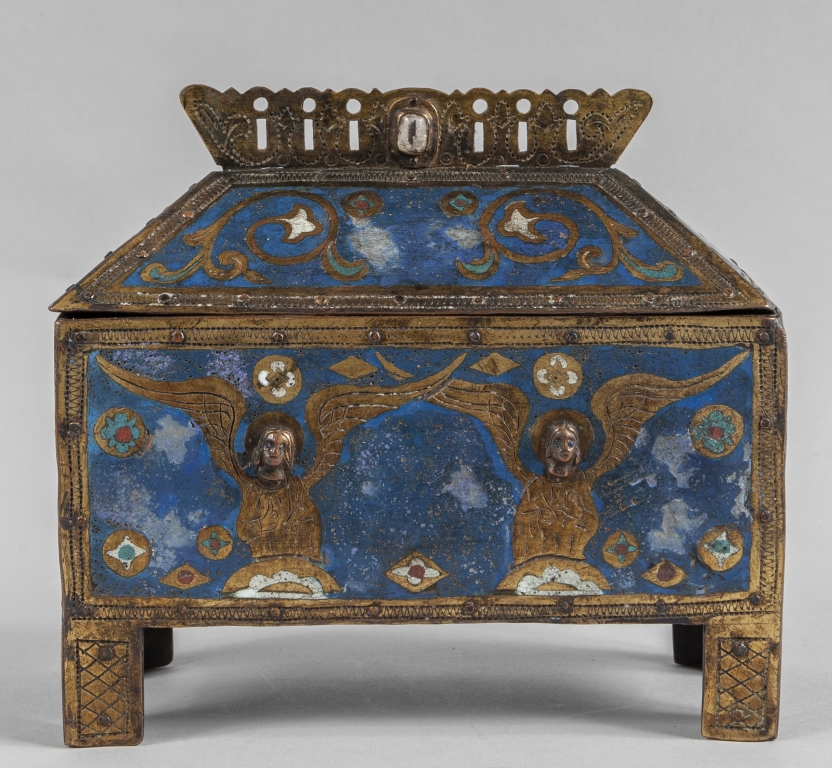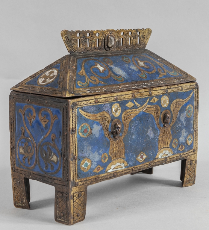Cassina in rame dorato decorata con smalti e pietre dure Limoges sec. XVI-XVII