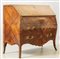 Ribalta Luigi XV lastronata in palissandro e filettata in bois de rose movimentata sul fronte e sui fianchi sul fronte ribalta che cela all'interno scarabattolo con sportello e numerosi cassetti Genova metà sec.XVIII