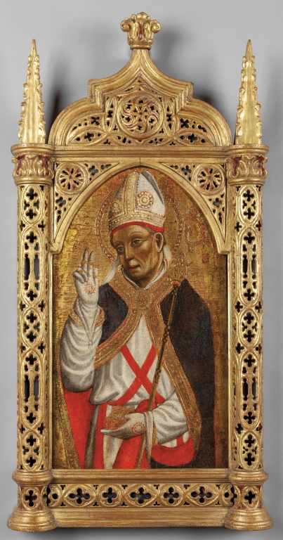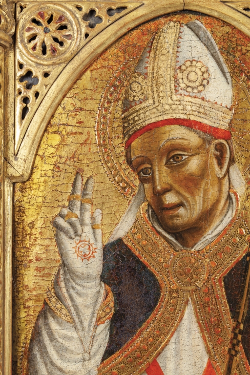 Alla Rosetti Brezzi si deve l'ipotesi che il San Nicola rappresenti uno scomparto di un disperso polittico di cui facevano forse parte due pannelli frammentari comparsi sul mercato antiquario e che rappresentano l'Incoronazione della Vergine e la Madonna della Mandorla. La De Floriani concorda sull'ipotesi