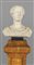 Busto di giovane donna con nastro tra i capelli scultura in marmo bianco statuario sec. XVII-XVIII poggiante su colonna liberty in legno marmorizzato