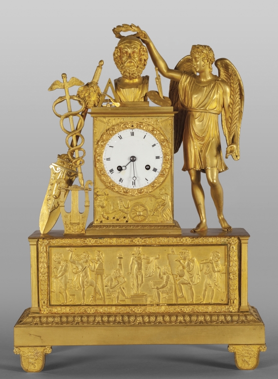 Orologio Carlo X in bronzo dorato con allegoria delle arti Francia inizi sec.XIX