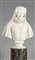 'Gentiluomo con colletto rigido' e 'Gentildonna con abito monastico' coppia di importanti busti in marmo bianco statuario poggianti su basi in marmo portoro Genova sec.XIX
