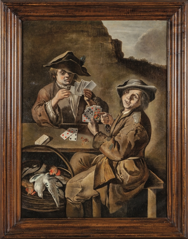 Bottega di Giacomo Francesco Cipper detto il Todeschini 'Giovani giocatori di carte' olio