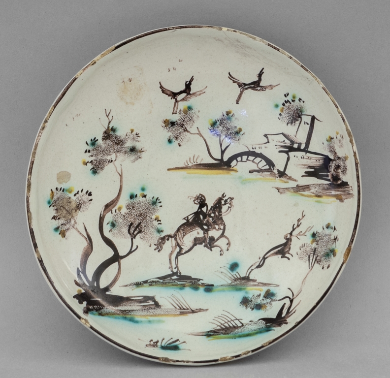 Piattino in maiolica decorato a figurette Savona sec.XVIII