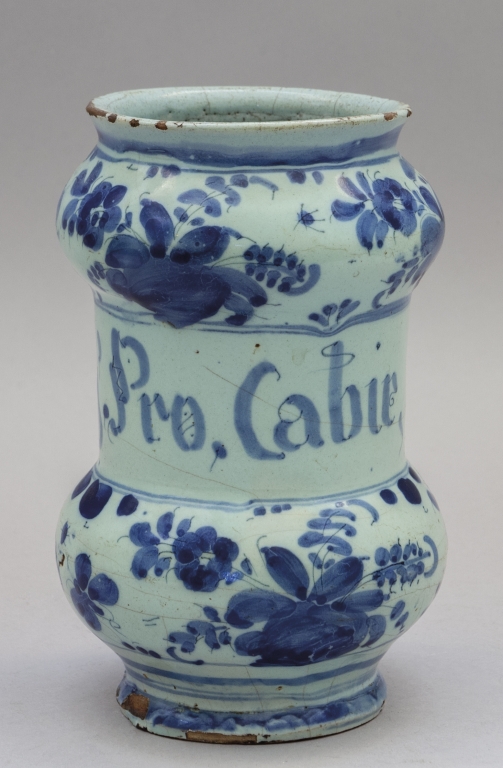 Albarello in ceramica decorazione blu su fondo berrettino Savona sec.XVIII