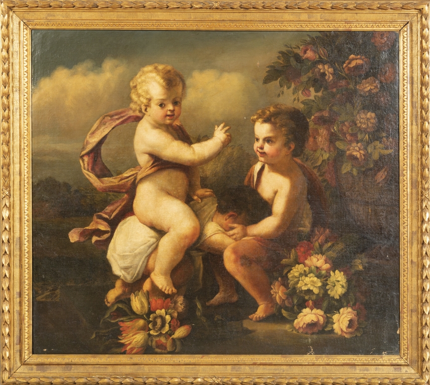 Scuola romana sec. XVII 'Amorini che giocano' olio