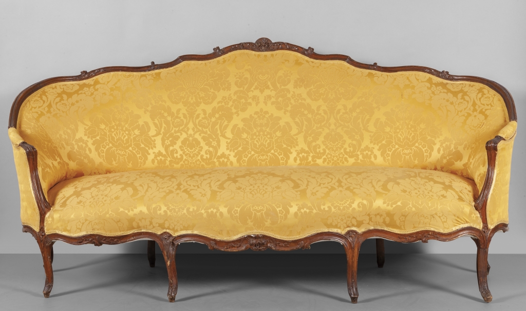 Divano Luigi XV a corbeille in noce intagliato Genova sec.XVIII