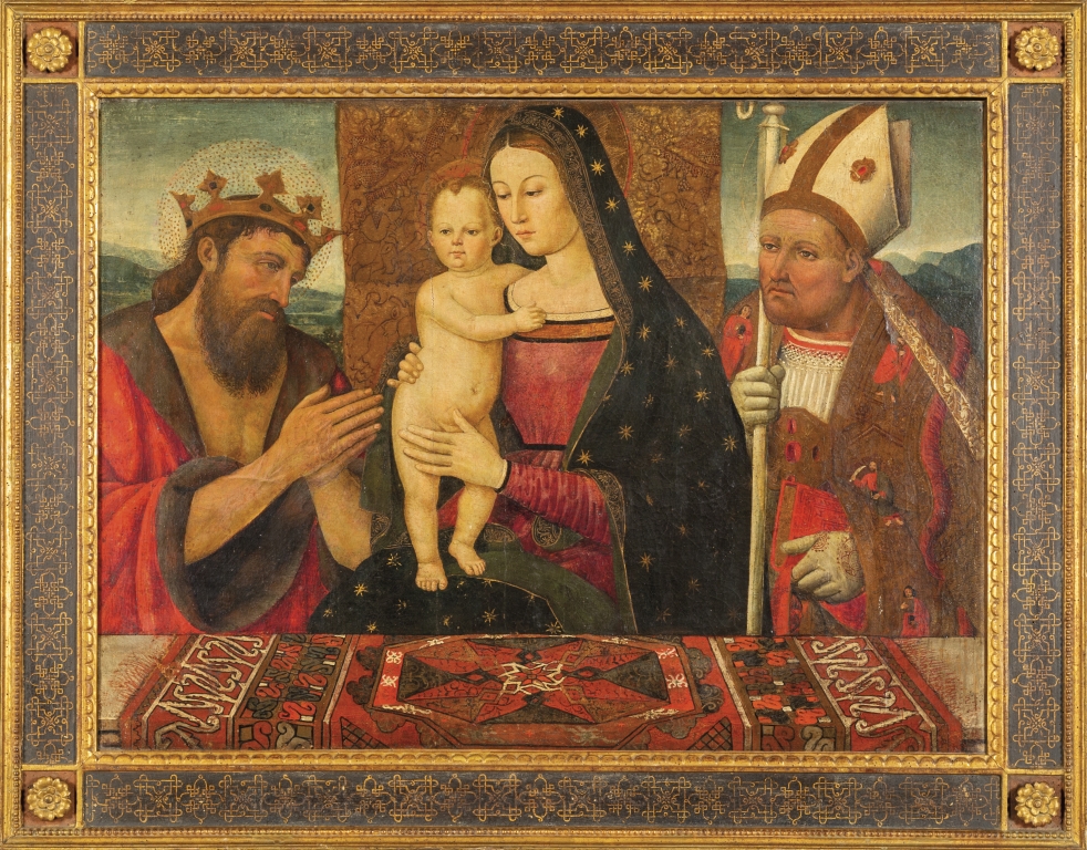 Scuola veneta fine sec. XVI 'Madonna con Bambino in trono tra Santi' olio