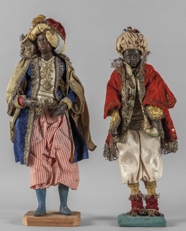 Due figure da Presepe con occhi di vetro raffiguranti moretti Italia Meridionale sec.XVIII