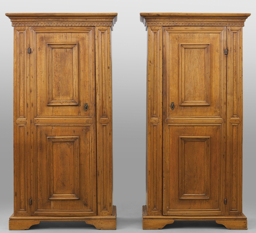 Coppia di piccoli armadi in massello di noce ad un'anta
