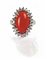 Anello in oro bianco epoca anni'60 con montato un corallo rosso vecchia estrazione taglio cabochon ovale e diamanti a contorno per tot ct 1 00 circa