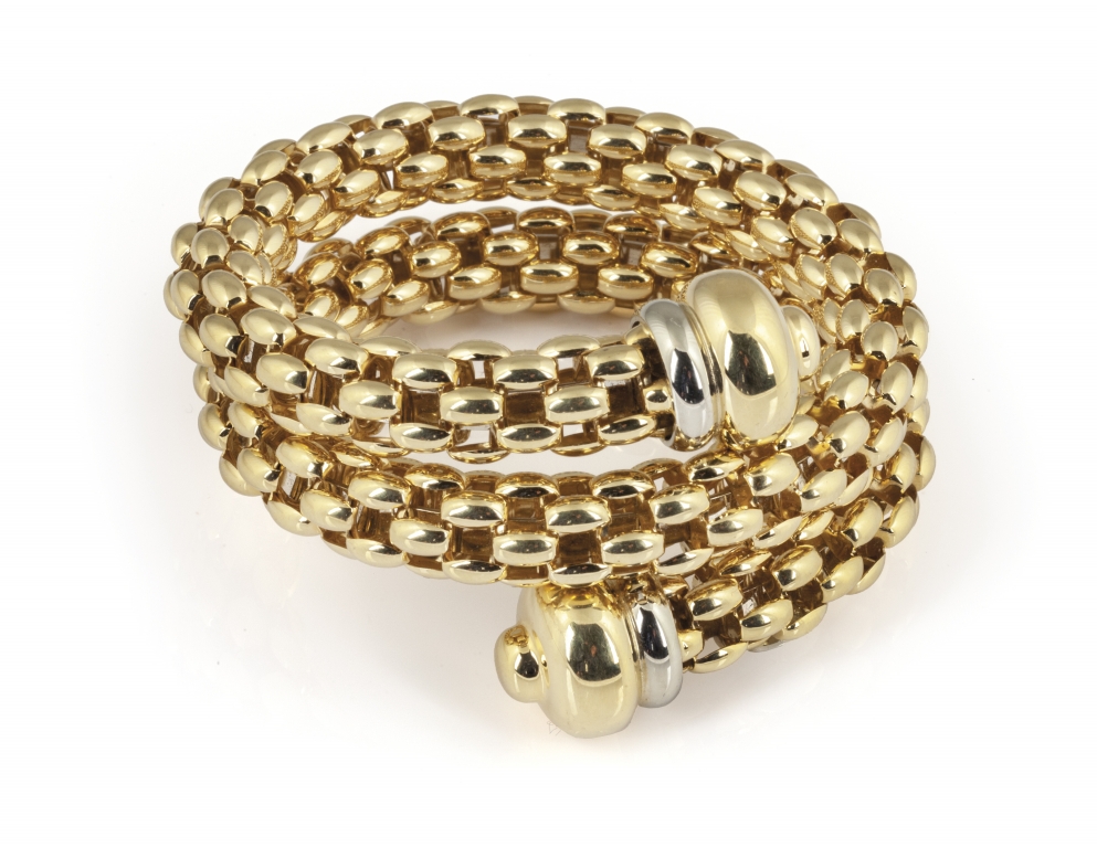 Bracciale in oro bianco e giallo firmato Fope a doppio giro a forma di contrarier