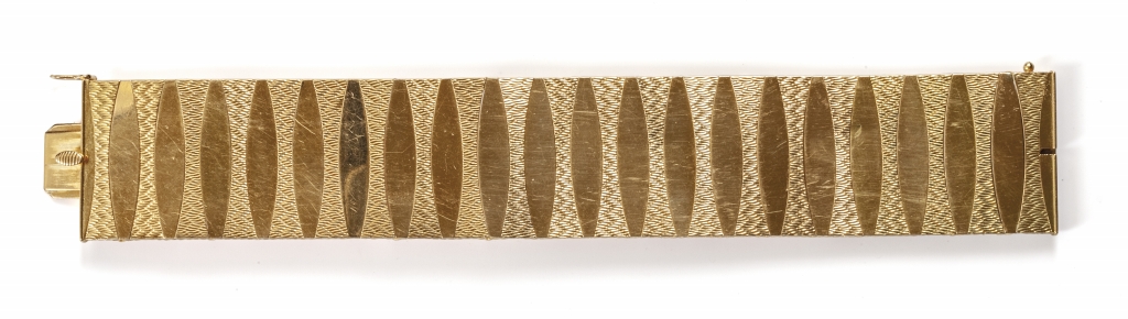 Bracciale in oro giallo epoca anni '60 con maglie a forma di placche