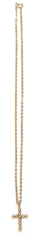 Collana in oro giallo portante croce firmata Alfieri & St.John con incastonati piccoli brillanti
