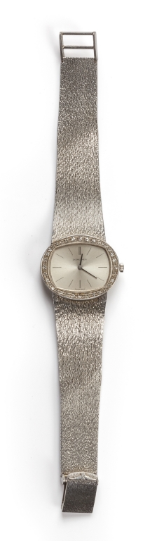 Orologio in oro bianco marca Longines con bracciale a 'corteccia' ghiera con incastonati piccoli brillanti