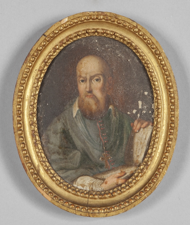 Scuola italiana sec.XVIII 'Ritratti di prelati' coppia di olii su metallo di forma ovale cornici coeve in legno intagliato e dorato