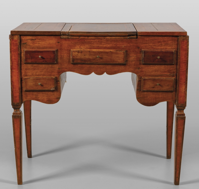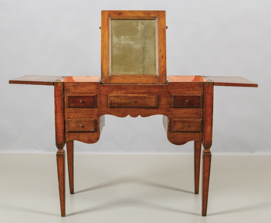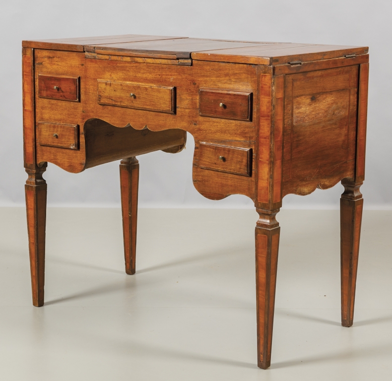 Toilette Luigi XVI in massello di noce con filetti in bois de rose e amaranto tre cassetti sul fronte Genova fine sec.XVIII