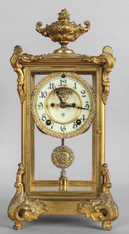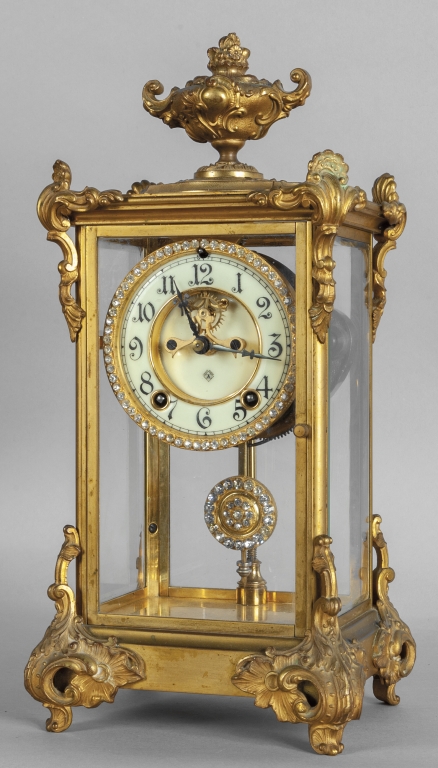 Pendola in bronzo dorato quadrante decorato con strass