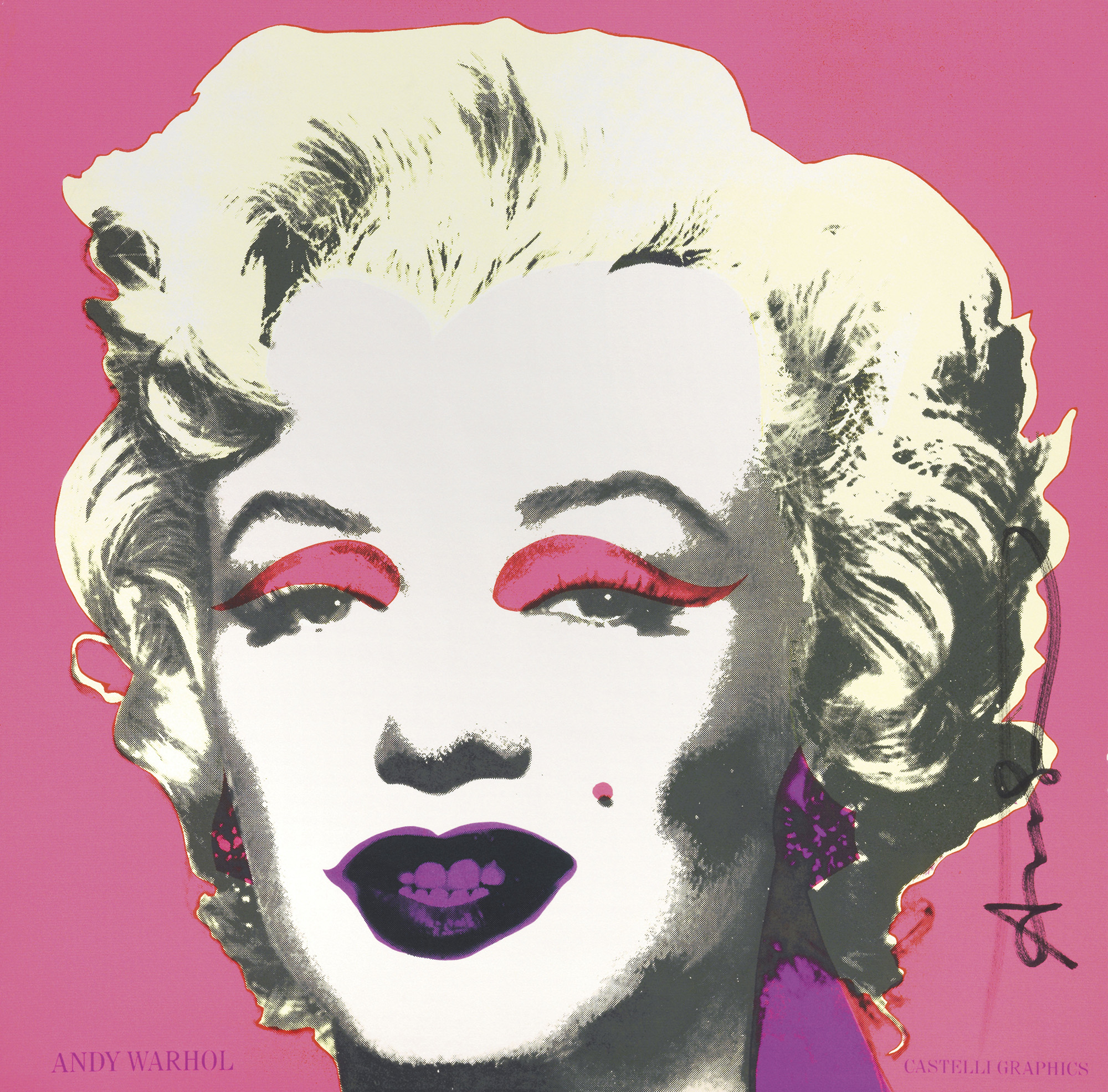 Andy Warhol Pittsburgh 1928 - New York 1987 Marilyn Biglietto d'invito, cm. 30,4x30,4 Firma sul lato destro: Andy Warhol. Biglietto realizzato in occasione della mostra Andy Warhol. A Print Retrospective 1963-1981, New York, Castelli Graphics, 21 novembre - 22 dicembre 1981