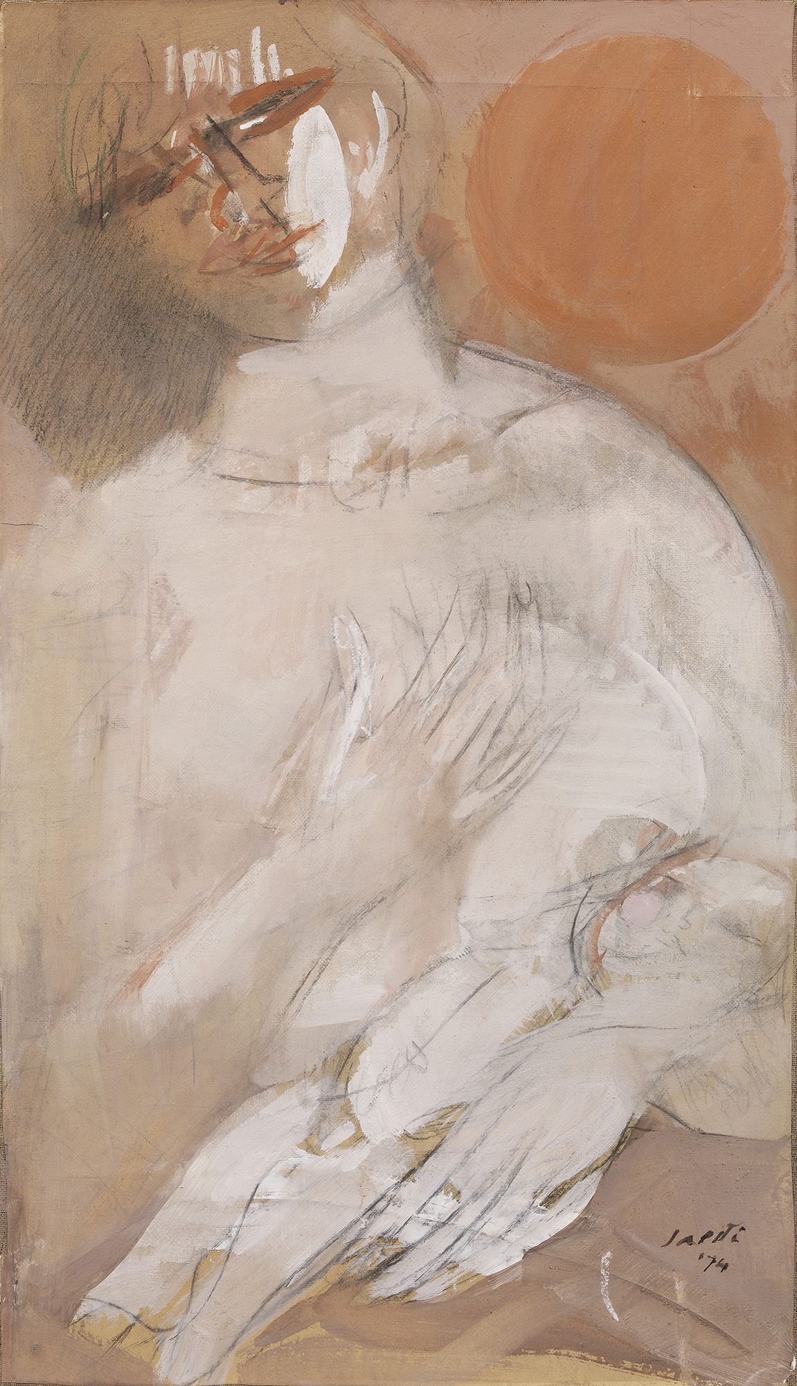 Bruno Saetti Bologna 1902 - 1984 Maternità, 1974 Tempera e carboncino su cartoncino applicato su tela, cm. 81,5x46,5 Firma e data in basso a destra: Saetti / '74. Opera registrata al n. 2231 del Catalogo dell'opera del maestro, a cura dell'Associazione Bruno Saetti, Venezia