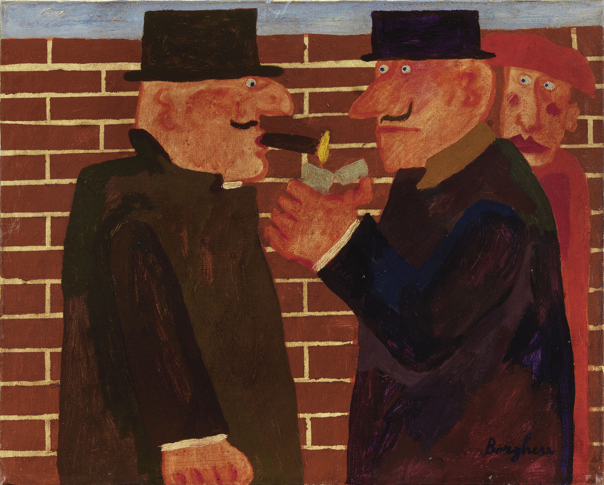 Franz Borghese Roma 1941 - 2005 L'accendino Olio su tela, cm. 39,8x50 Firma in basso a destra: Borghese. Al verso sulla tela: timbro Galleria Margutta, Roma. Foto autenticata dall'artista