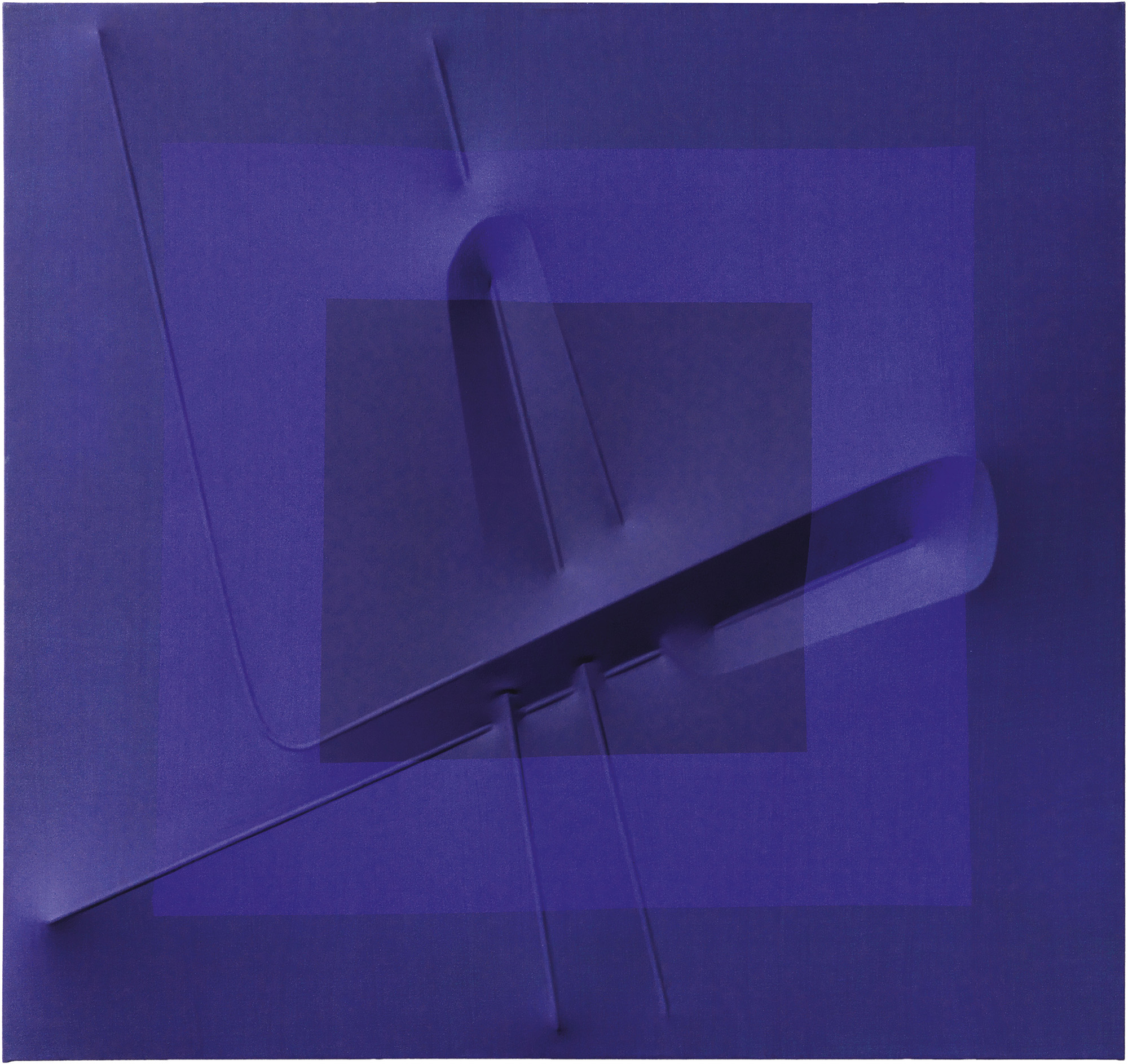 Agostino Bonalumi Vimercate (Mi) 1935 - Milano 2013 Blu, 2005 Tela estroflessa e acrilico, cm. 95x100 Firma e data al verso sul telaio: Bonalumi 05. Foto autenticata dall'artista; opera registrata presso l'Archivio Bonalumi, Milano, al n. 05-006. Bibliografia: Agostino Bonalumi. Catalogo ragionato, a cura di Fabrizio Bonalumi e Marco Meneguzzo, Skira Editore, Milano, 2015, vol. II, p. 692, n. 1632