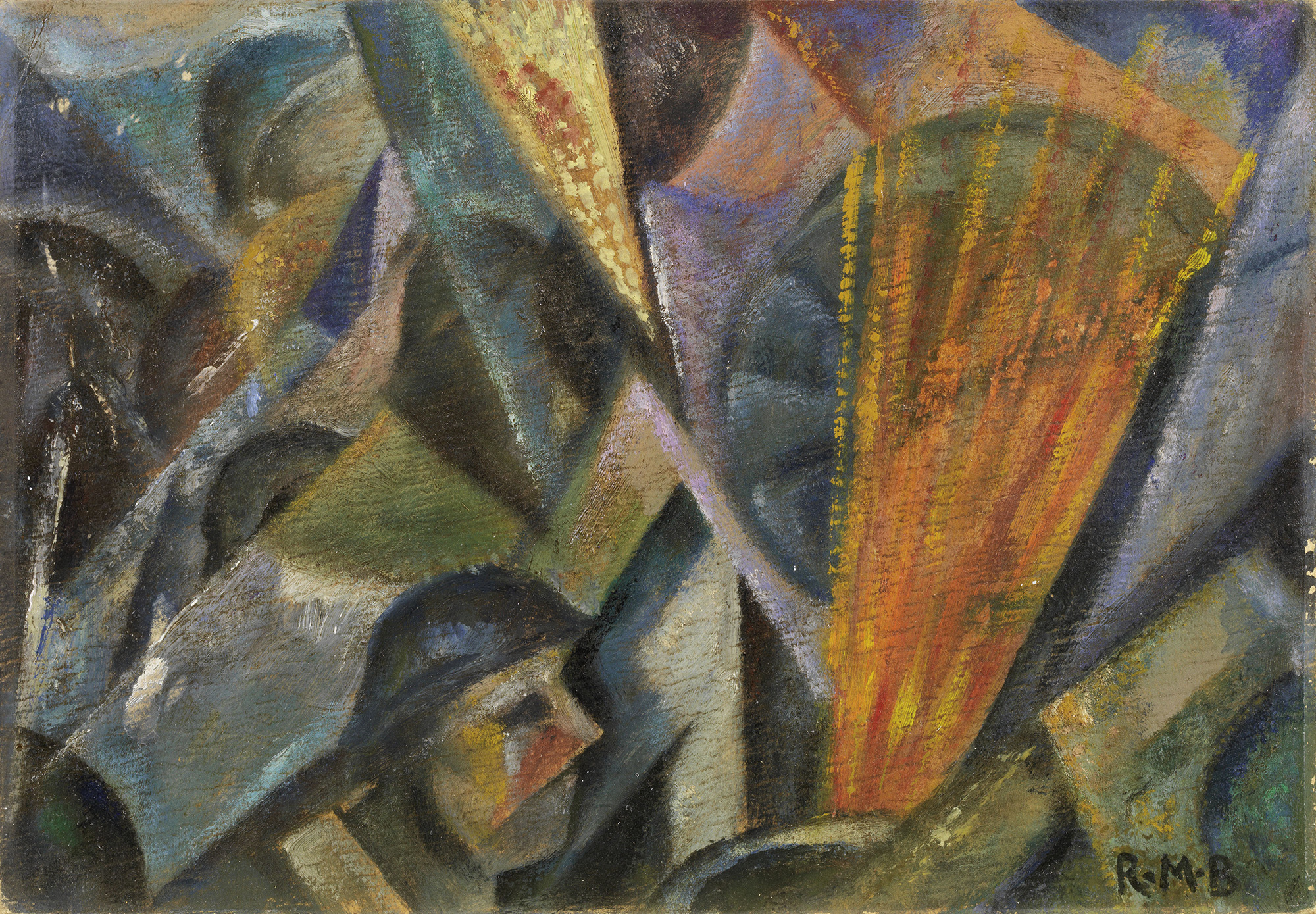 Roberto Marcello (Iras) Baldessari Innsbruck 1894 - Roma 1965 In trincea, 1918 ca. Olio e tempera su cartone, cm. 21x31 Sigla in basso a destra: R.M.B. Al verso: timbro La Vetrina di Chiurazzi / Al Babuino / Roma. Certificato con foto Archivio Unico per il Catalogo delle Opere Futuriste di Roberto Marcello Baldessari, Rovereto, 19 settembre 2014, con n. B18-42.