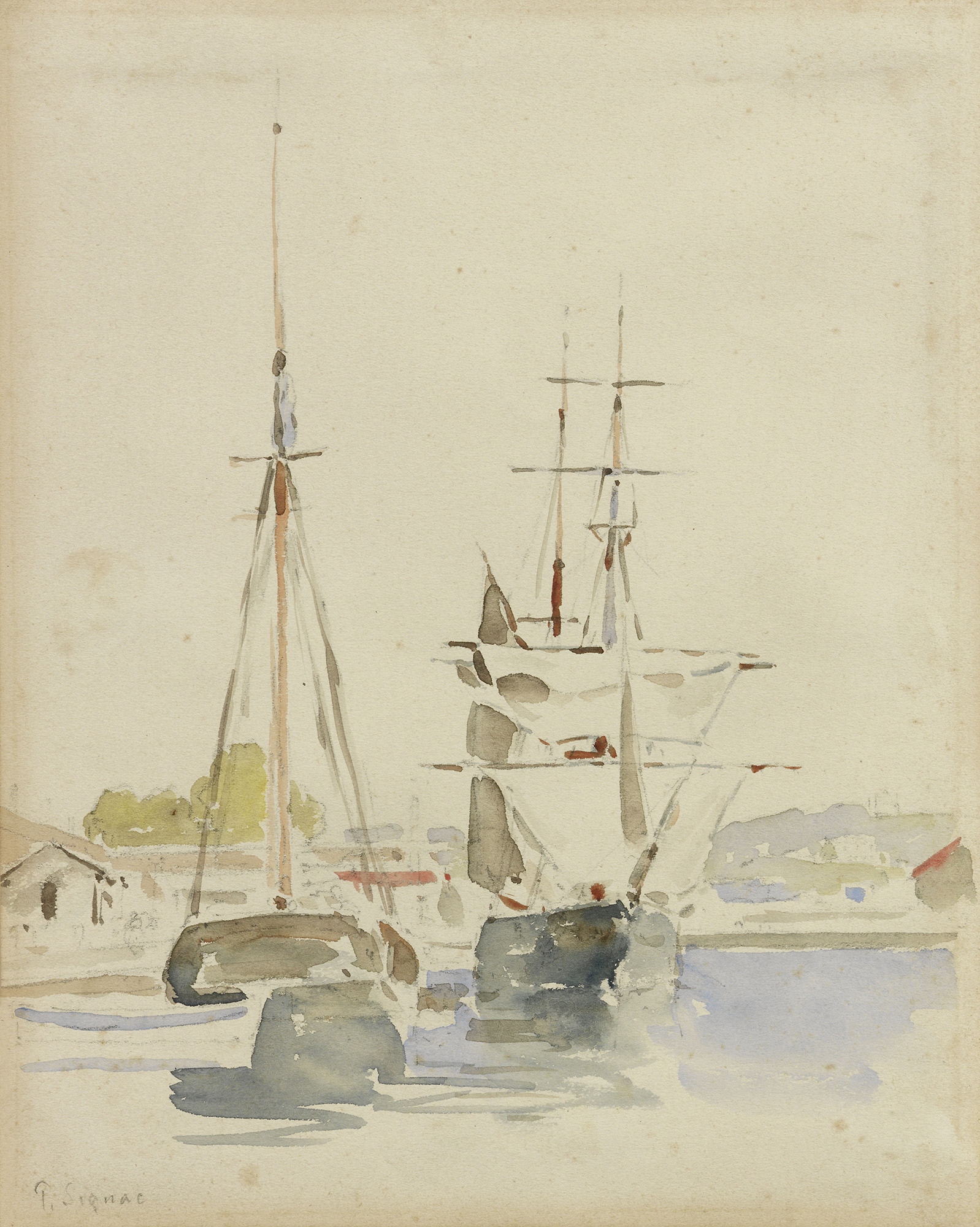Paul Signac Parigi 1863 - 1935 Velieri Acquerello su carta, cm. 23,8x19 Firma in basso a sinistra: P. Signac.