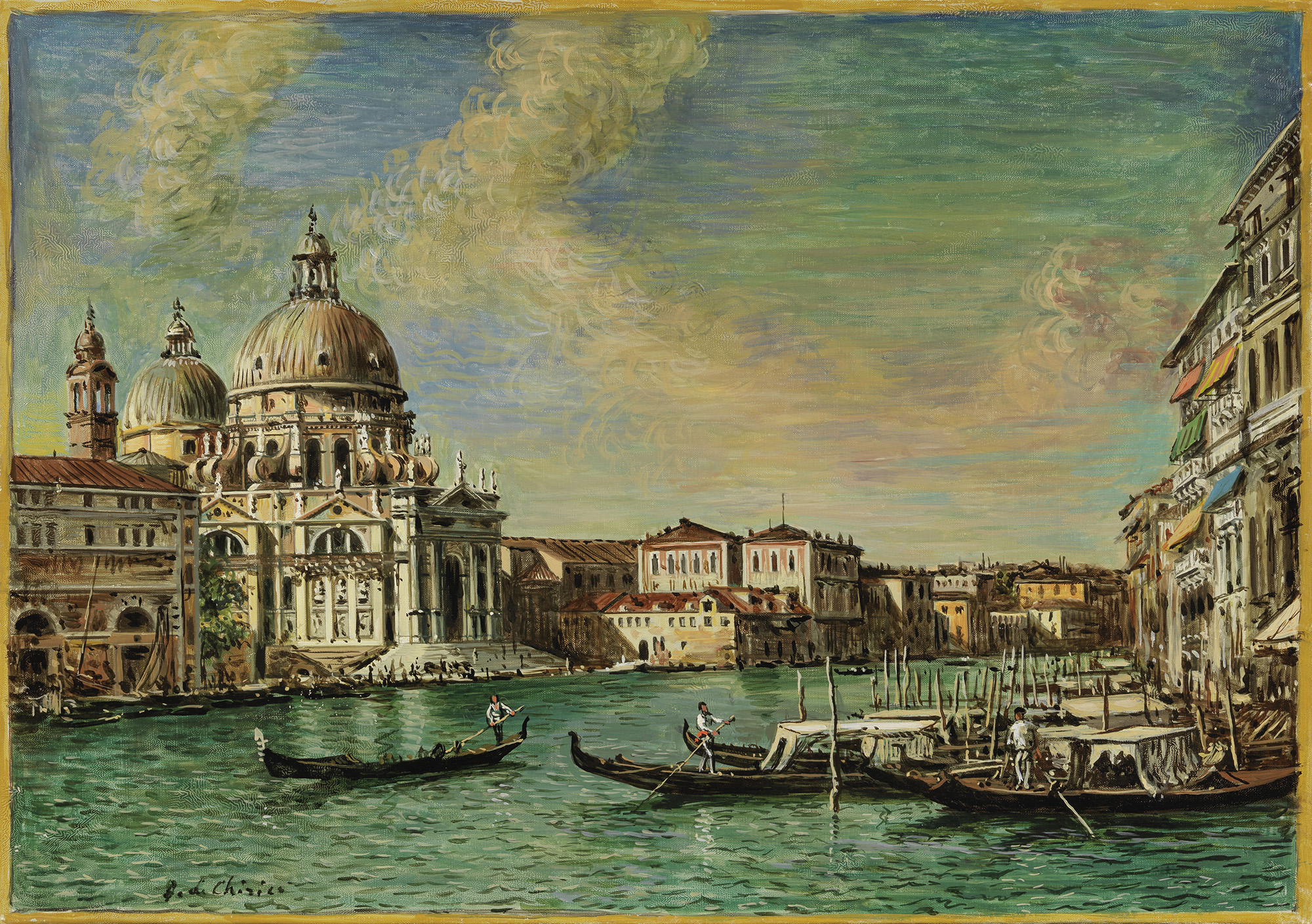 Giorgio de Chirico Volos 1888 - Roma 1978 Venezia. Chiesa della Salute, inizio anni Sessanta Olio su tela, cm. 50x70 Firma in basso a sinistra: G. de Chirico; dichiarazione di autenticità al verso sulla tela: Questa "Venezia" (Chiesa della Salute) / è opera autentica, da me eseguita e firmata / Giorgio de Chirico; sul telaio: timbro Galleria La Barcaccia, Roma. Storia Galleria La Bussola, Torino; Galleria La Barcaccia, Roma; Collezione privata, Milano; Collezione privata Certificato su foto Fondazione Giorgio e Isa de Chirico, Roma, 27 maggio 2014, con n. 007/05/14 OT. Bibliografia Giorgio de Chirico. Catalogo generale, vol. 3/2016, opere dal 1913 al 1976, Maretti Editore, Falciano, 2016, p. 319, n. 1261.