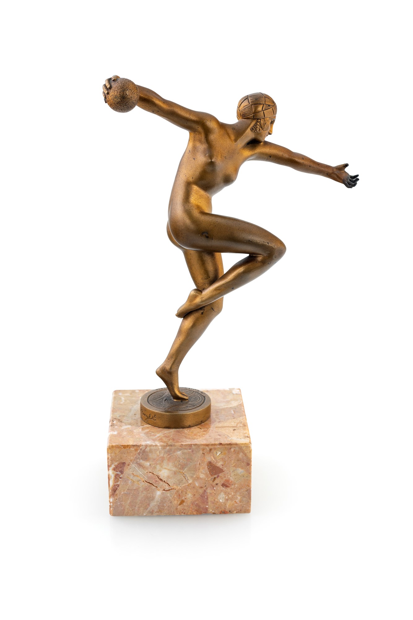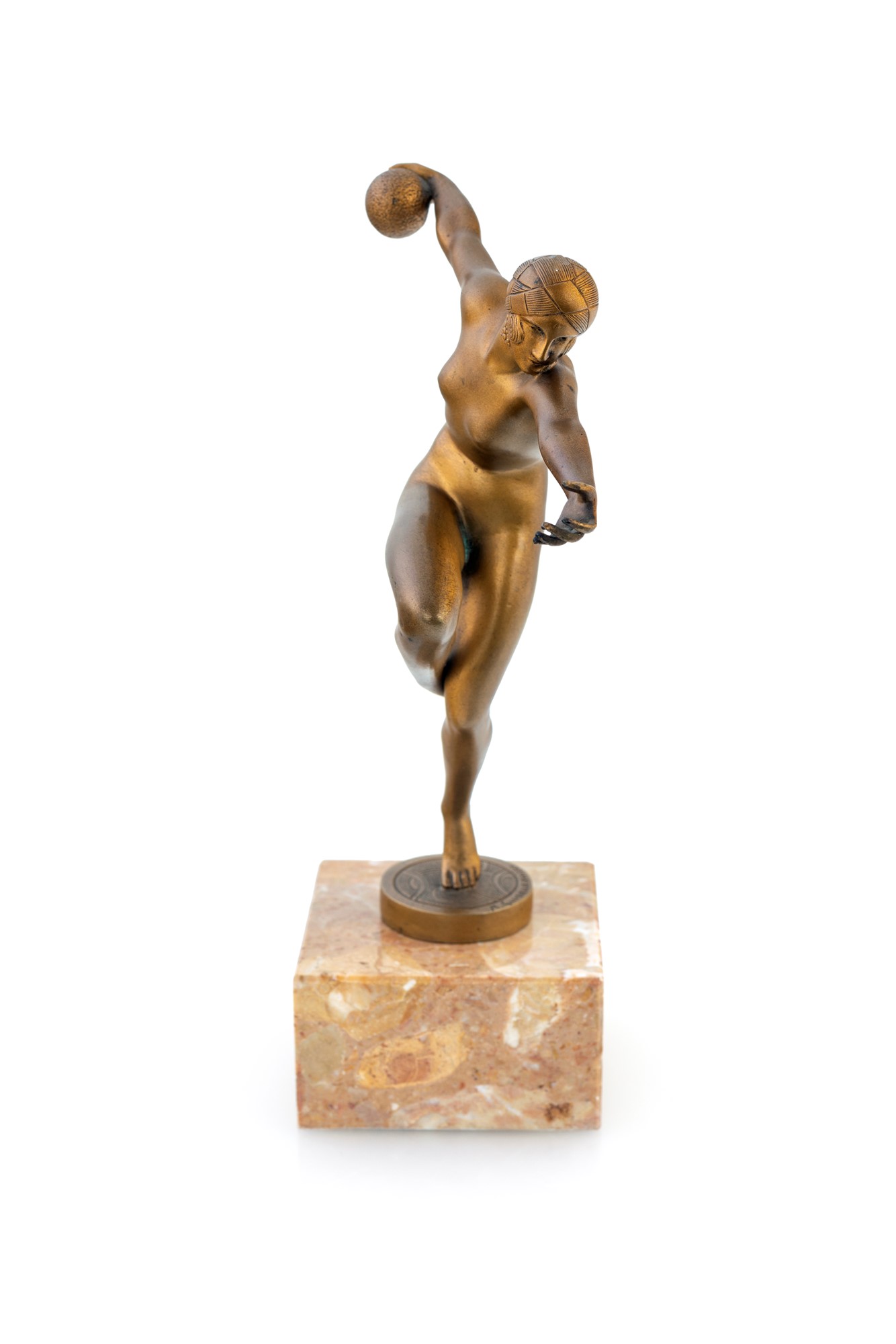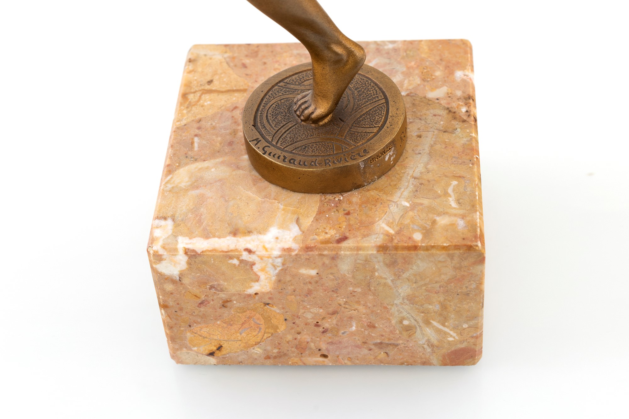 PRODUZIONE FRANCESE Scultura in bronzo dorato - donnina danzatrice , base in marmo, firma incisa sulla base e a lato (Patrovilleau Edition ) - alt.cm.28 - 1930 ca