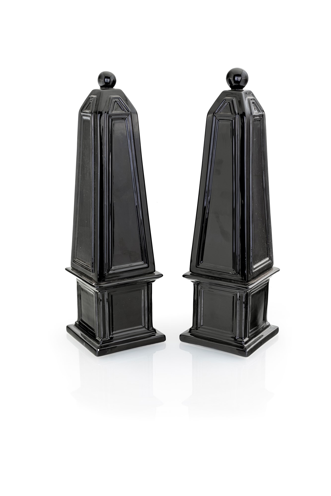 PRODUZIONE ITALIANA Coppia di Obelischi - decorativi in ceramica a colaggio smaltata nera a forma neoclassica - cm50 base 15x15 - 1950