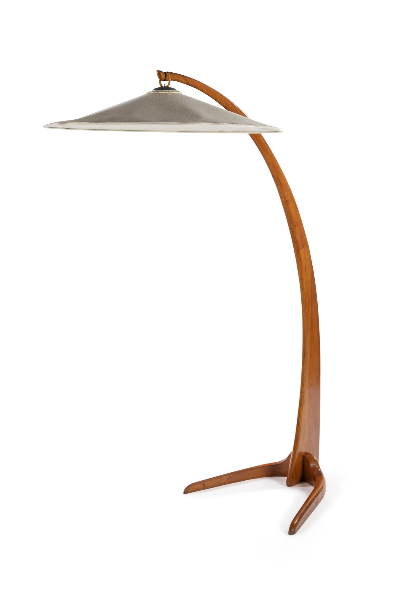 PRODUZIONE ITALIANA Lampada da terra - in noce piede a forma di ferro di cavallo, paralume originale - cm165 base 55x60 - 1940