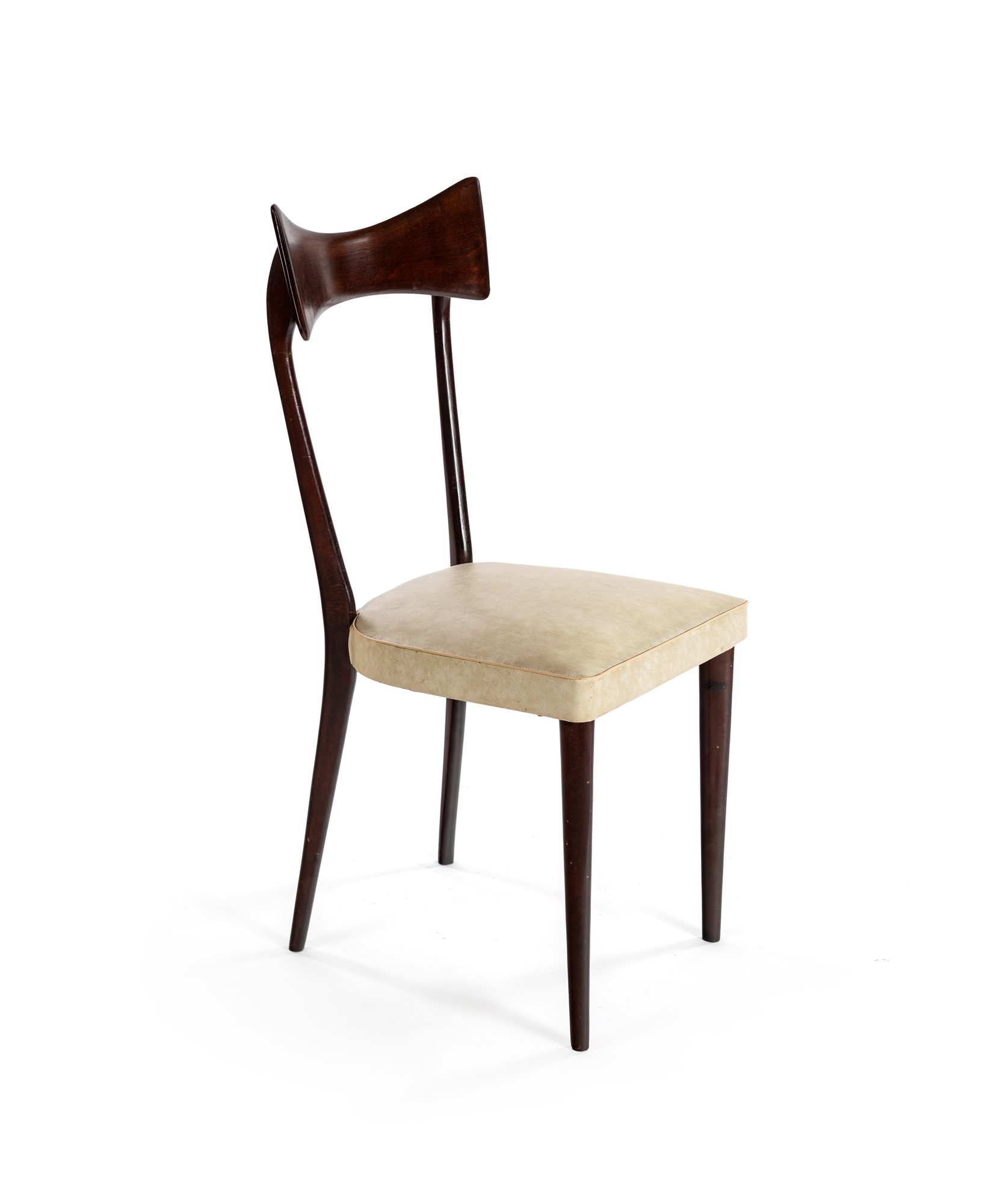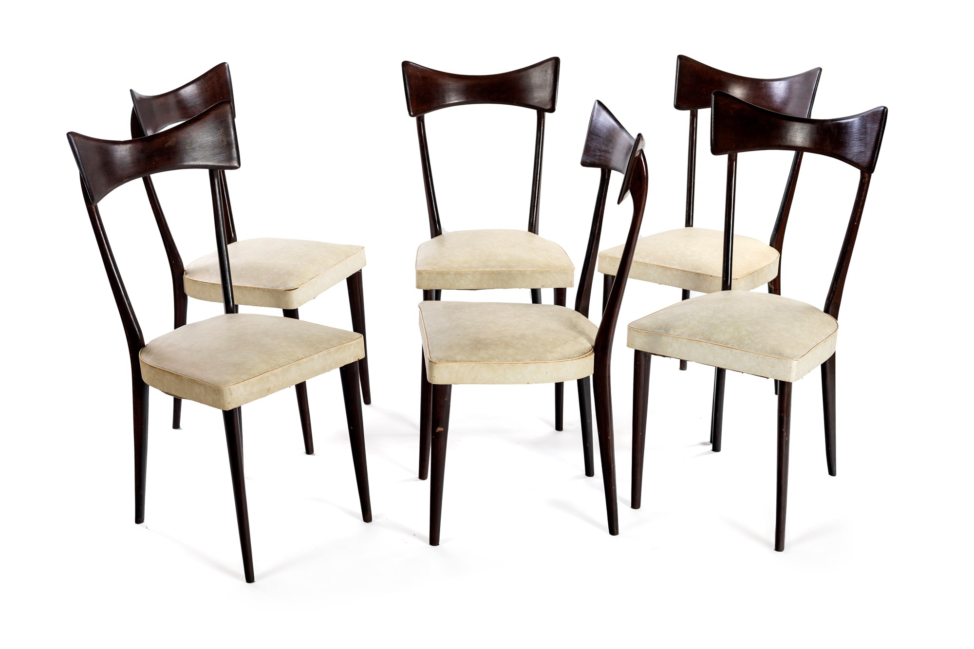 PRODUZIONE ITALIANA Sedie - set di sei nello stile di Ico Parisi in faggio tinto e rivestimento in ecopelle - cm 95x44x47 - 1950ca