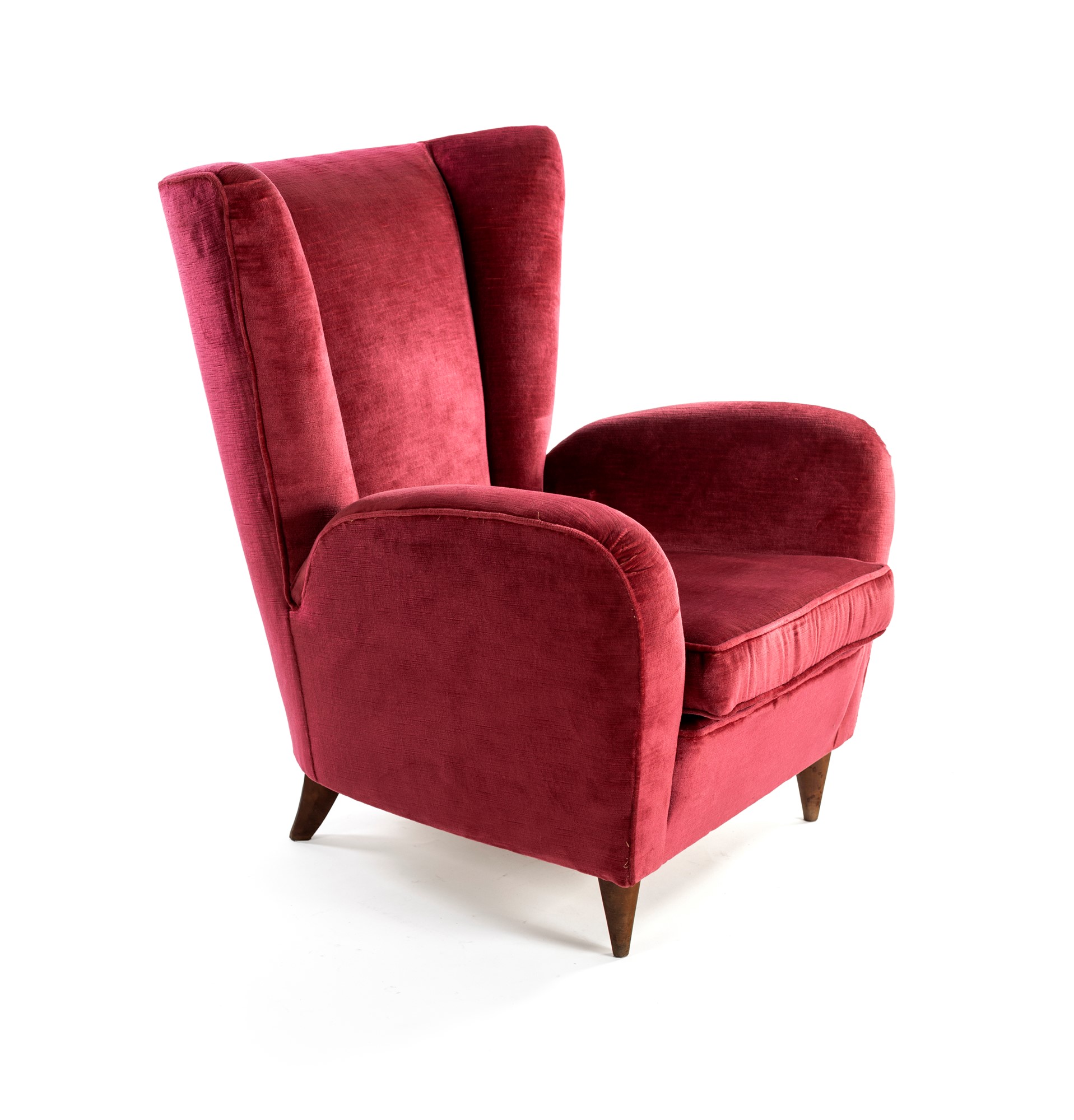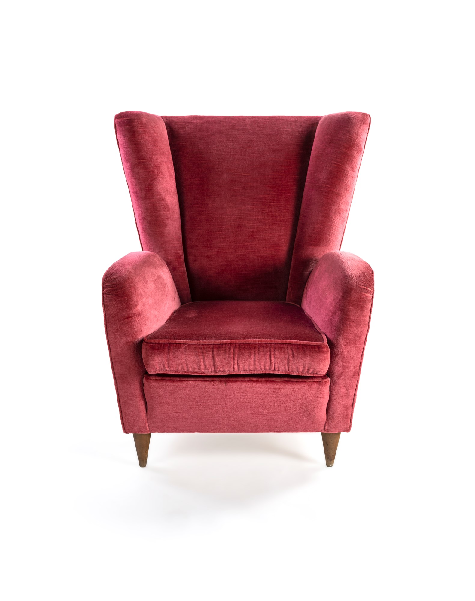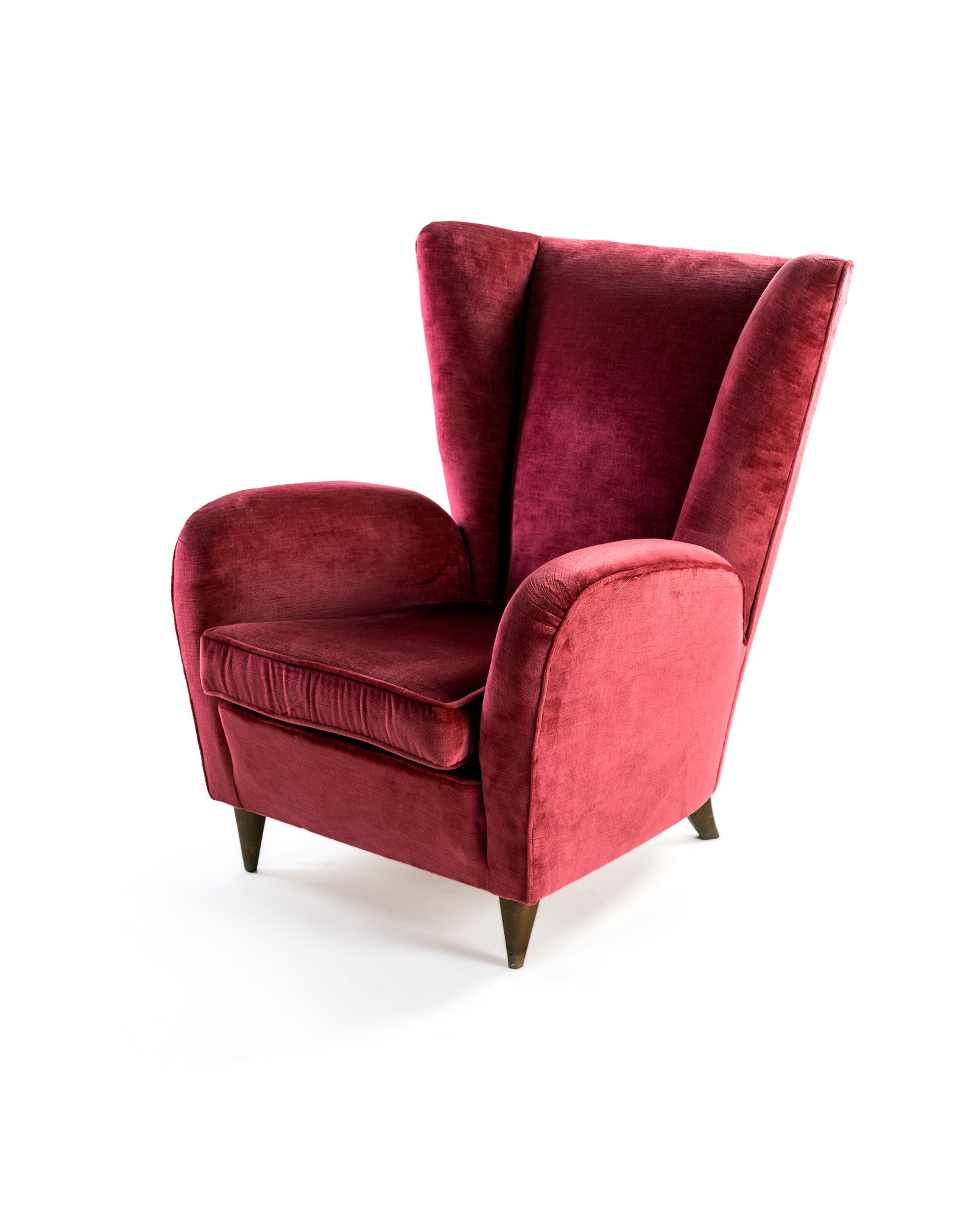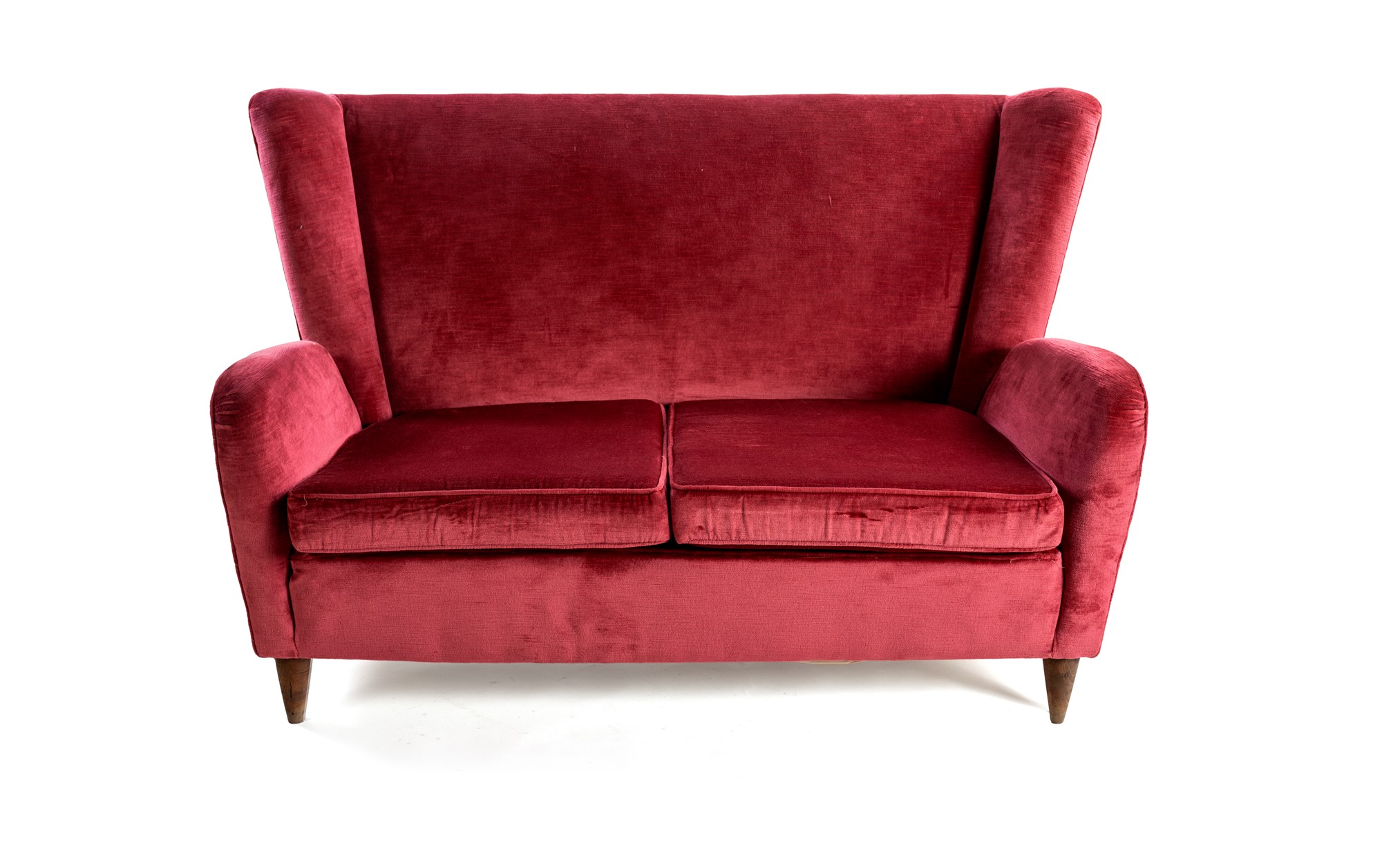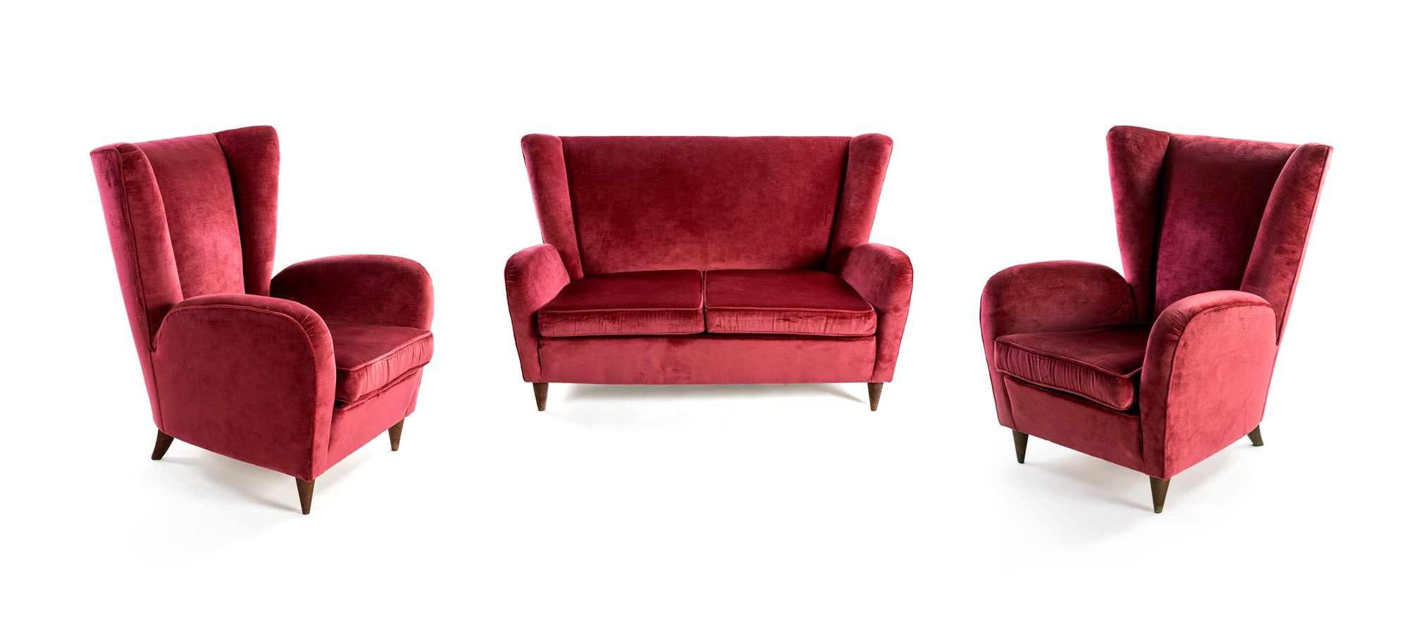 PAOLO BUFFA Salotto - composto da un divano 2 posti piu'due poltrone rivestimento originale in velluto,sostegni in legno Prod. Italiana - Divano cm 90x144x70, poltrone cm 90x76x70 - 1950