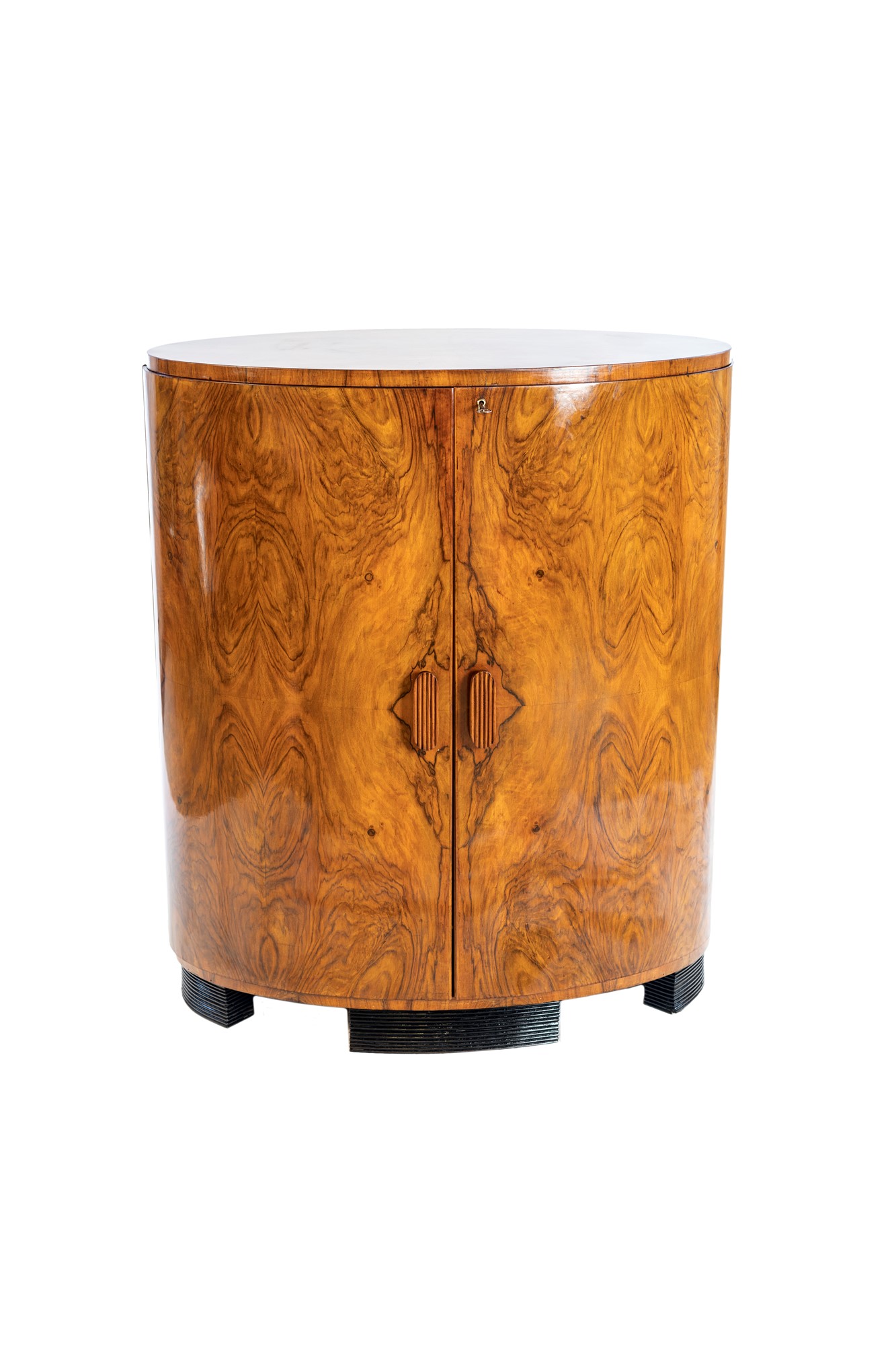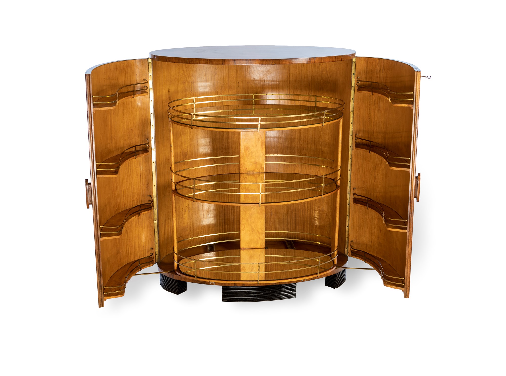 OSVALDO BORSANI Attr. Mobile bar - in radica di noce ovale ,interni in vetro con dettagli di ottone - cm120x100x60 - 1940