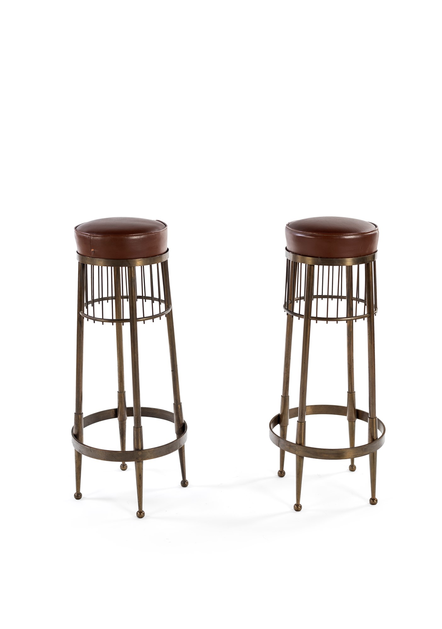 PRODUZIONE ITALIANA Sgabelli - da bar ,struttura in ottone brunito rivestimento in ecopelle - cm 77base 34 - 1950ca