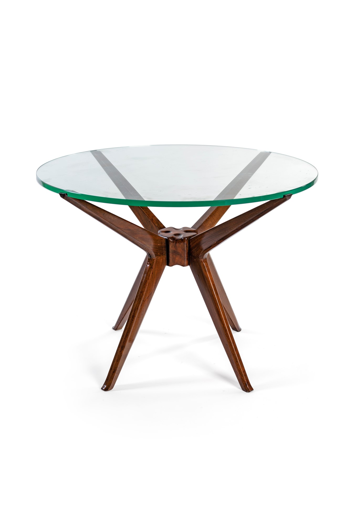CARLO DE CARLI -ANGELI-OLIVIERI Tavolino - in legno di rovere piano in cristallo Bibliografia "Stile" aprile 1942i Il mobile italiano anni '40 '50 I. De Guttry M.P.Maino - cm 60 diam cm 62 - 1950 ca