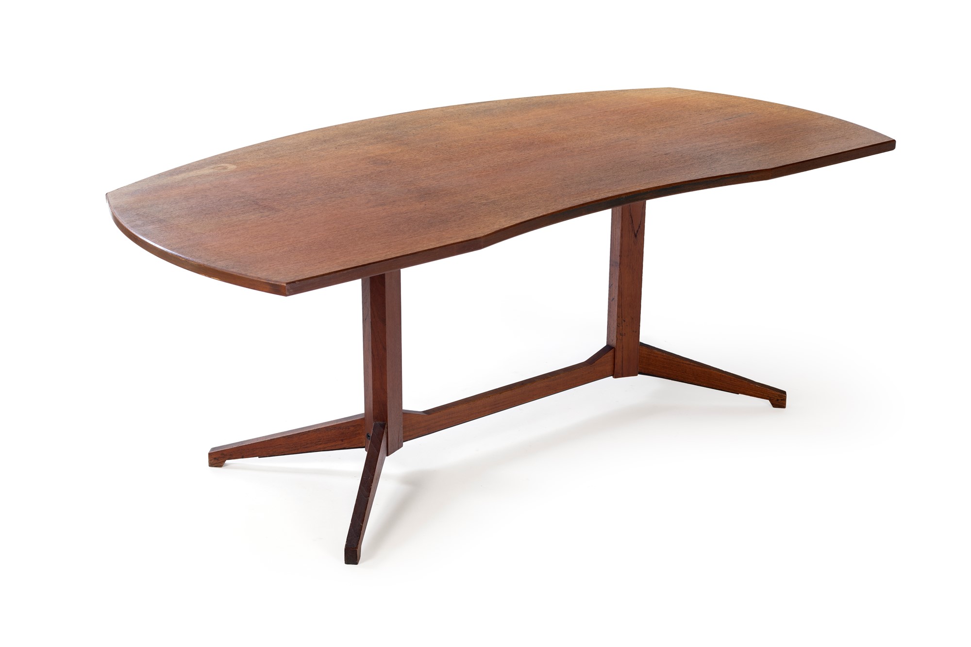 FRANCO ALBINI E FRANCA HELG Scrivania con cassettiera - ovale.TL22 in legno di palissandro smontabile con cassettiera maniglie in ottone Prod.Poggi Bibl. G.Gramigna Repertorio pag123 - cm 74x198x100 - 1958