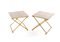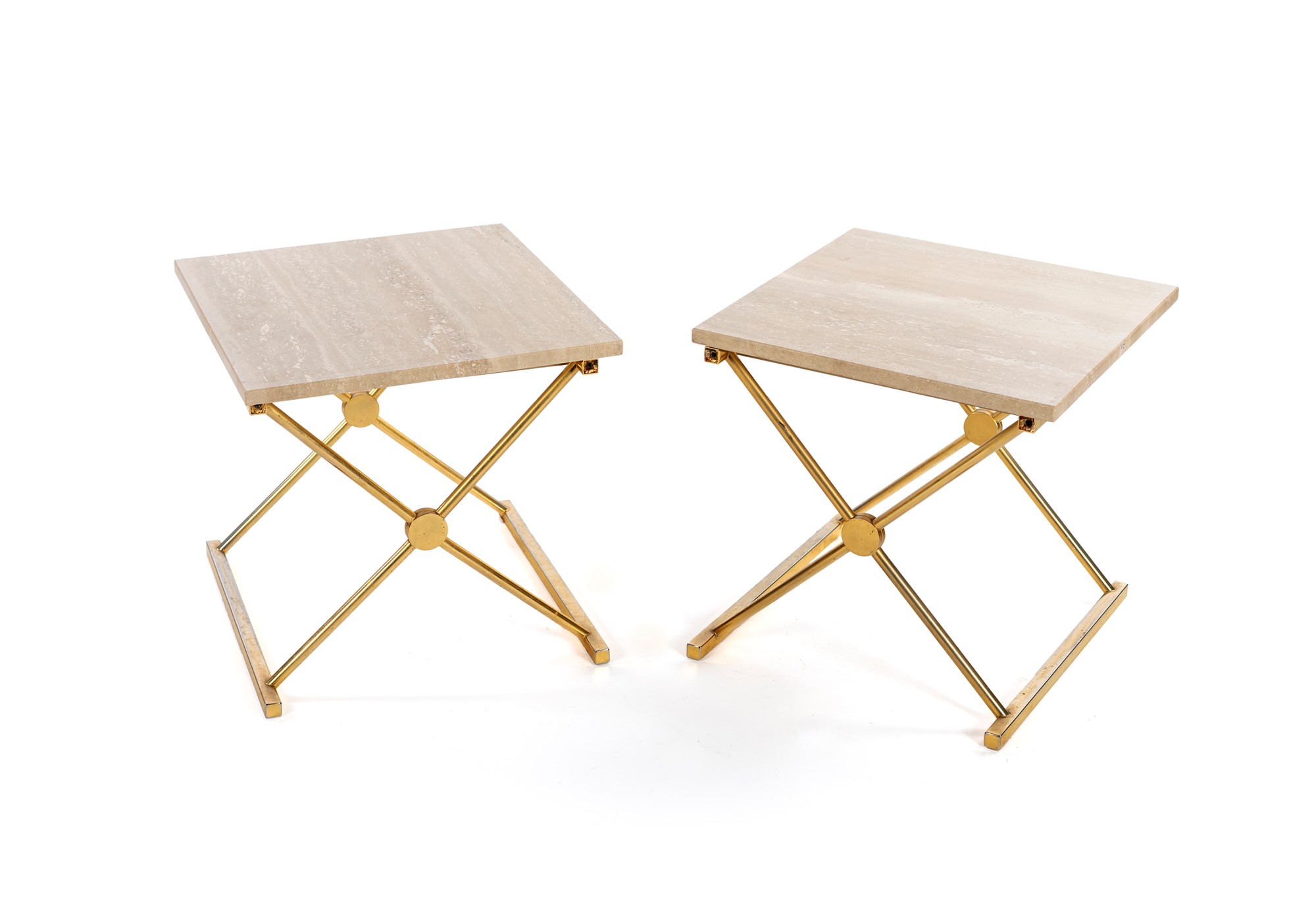 PRODUZIONE FRANCESE Tavolini - lato divani in ottone piano in marmo travertino - cm 43x46x43 - 1970