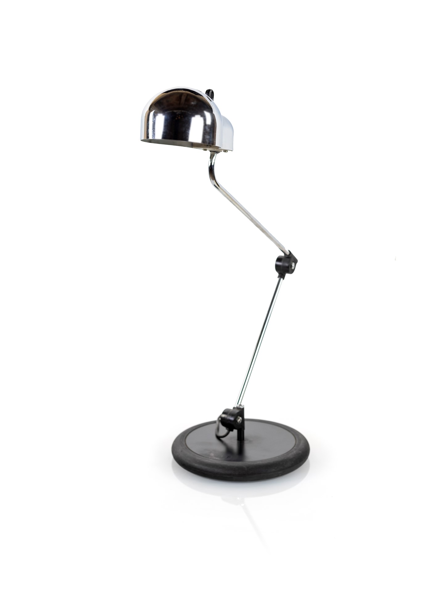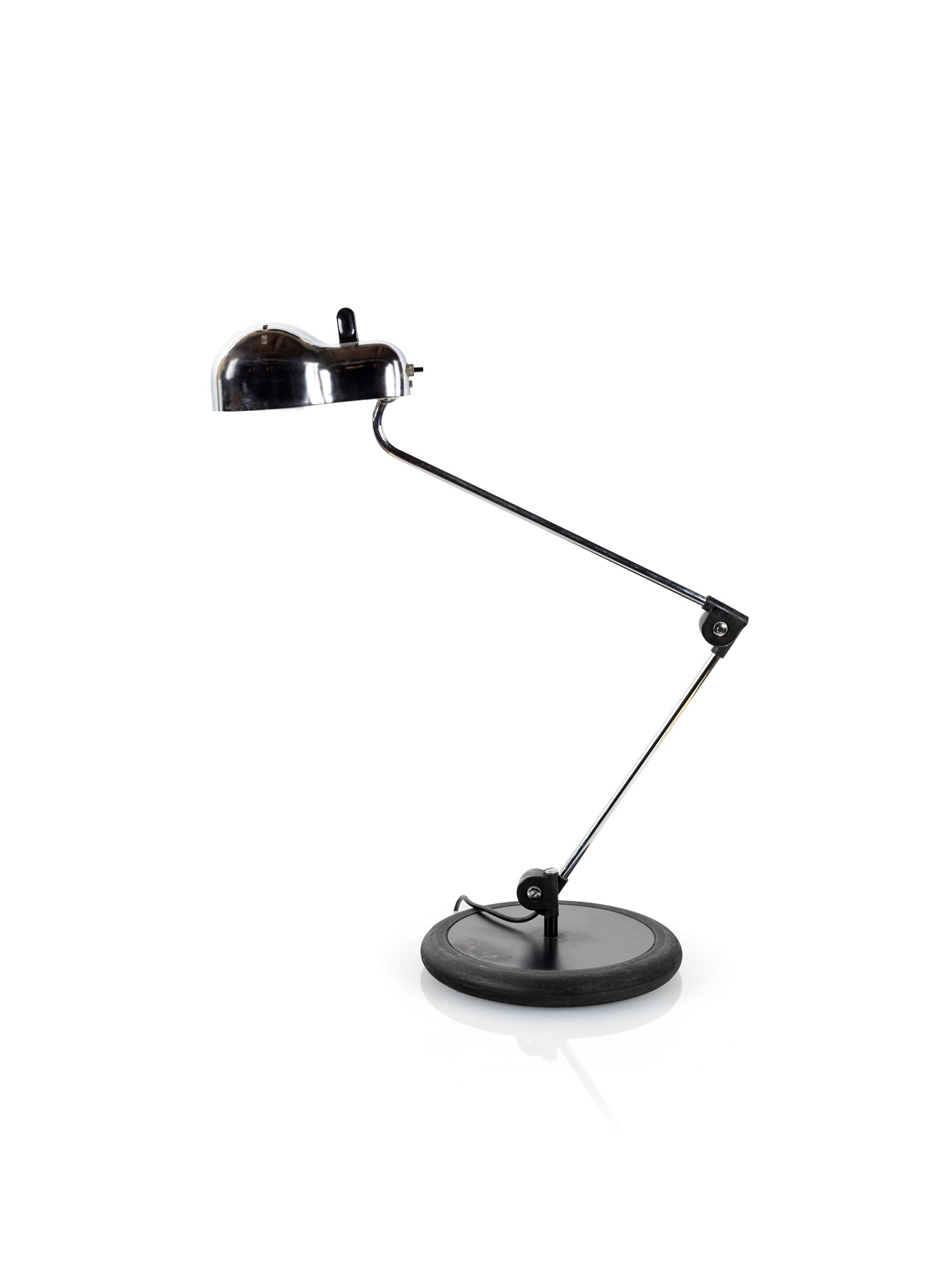 JOE COLOMBO Lampada da tavolo - "Topo" in cromo snodabile e orientabile Prod. Stilnovo - cm 70 base diam cm 40 - 1970
