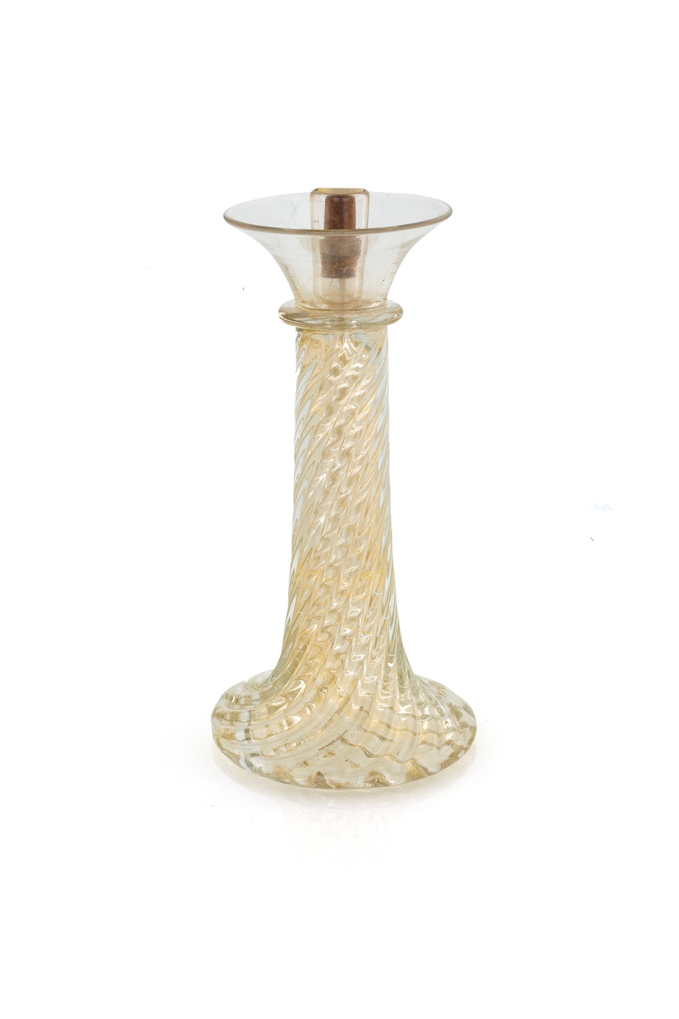 VENINI MURANO Lampada da tavolo - in vetro soffiato di murano lavorazione torchon con inclusione d'oro . - cm 44 base diam cm16 - 1940